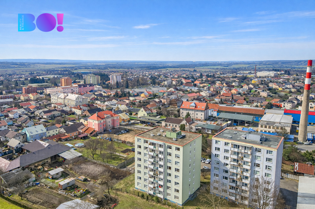BO! Reality Vám Nabízíme k prodeji prostorný byt o dispozici 3+1 se šatnou, nacházející se v 8. patře panelového domu s výtahem v klidné a vyhledávané části města Lipník nad Bečvou. Jedná se o větší variantu dispozice s celkovou plochou 74 m², která zahrnuje zasklenou lodžii (3 m²) a sklep (2 m²).