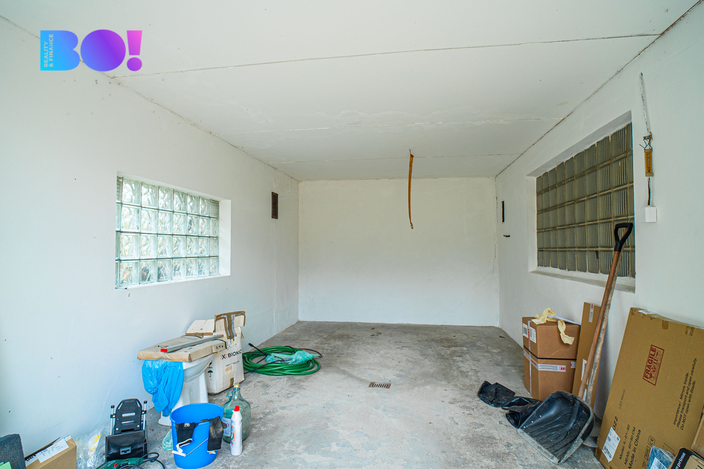 - Garáže 2×20 m² + sklep.