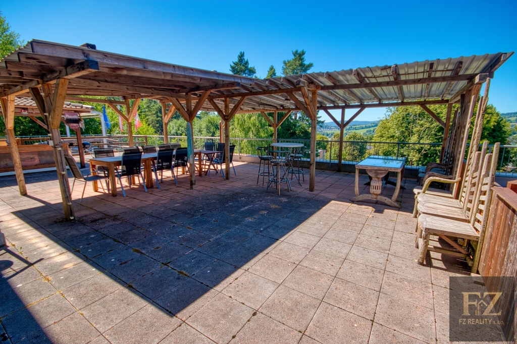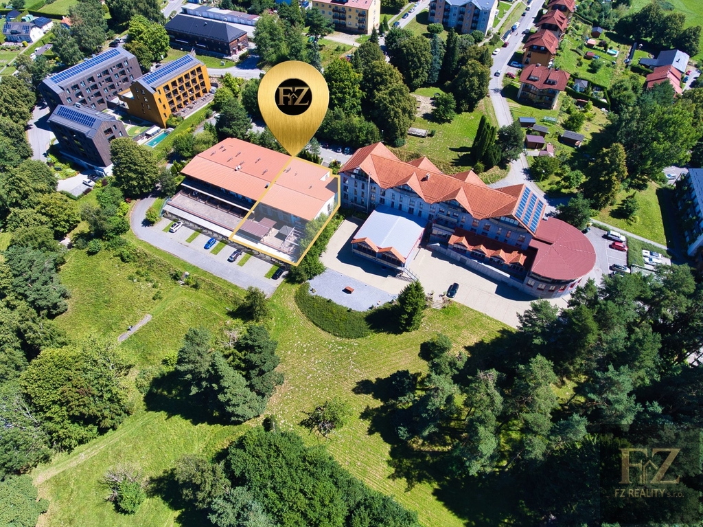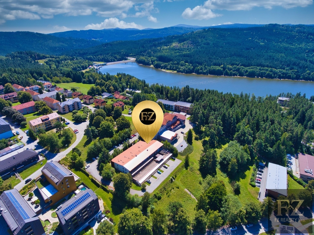 Bytové a nebytové prostory o celkové ploše 930 m², terasa 195 m² a pozemek 60/1 o výměře 3366 m² v centru rekreační oblasti Lipenska, která je vzdálena cca 300 m od jezera Lipno.
