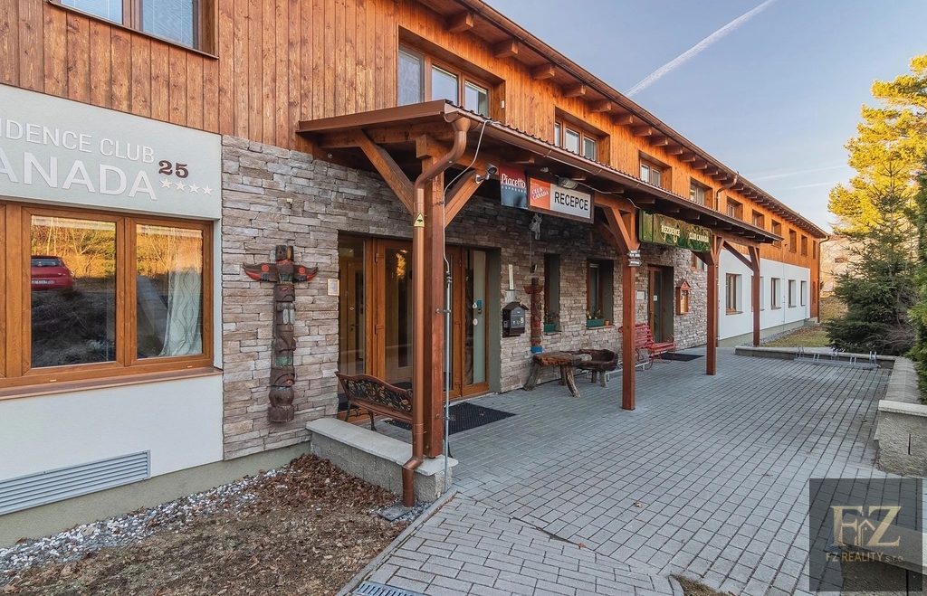 Nabízíme k prodeji unikátní objekt REZIDENCE CLUB CANADA s bytovými jednotkami, wellness, recepcí, kanceláří, konferenčními prostory a vybavenou kuchyní v obci Lipno nad Vltavou.