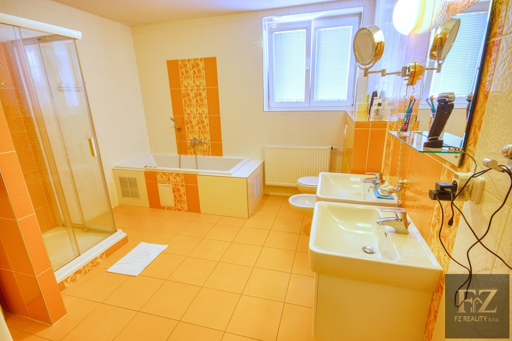 Dispozice 3+1, 1x samostatné WC, 1x velká koupelna s vanou, sprchou, toaletou, bidetem, dvěma umyvadly a pračkou, balkon 4 m².