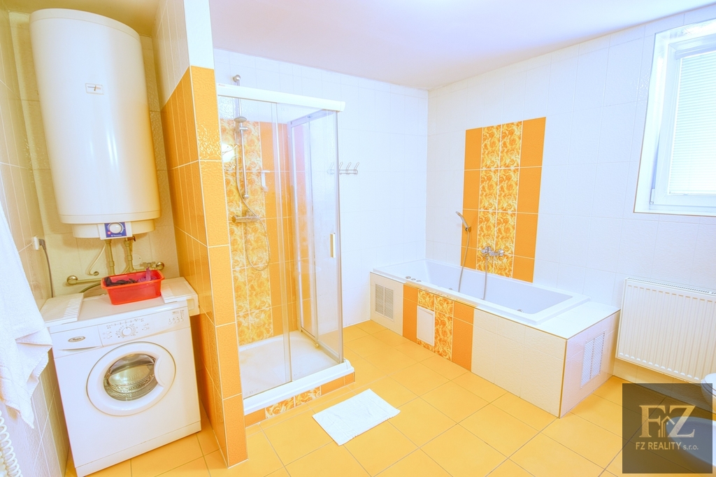 Suterén: 2x sprchy (pro muže a ženy), 2x samostatné WC a místnost s pračkou