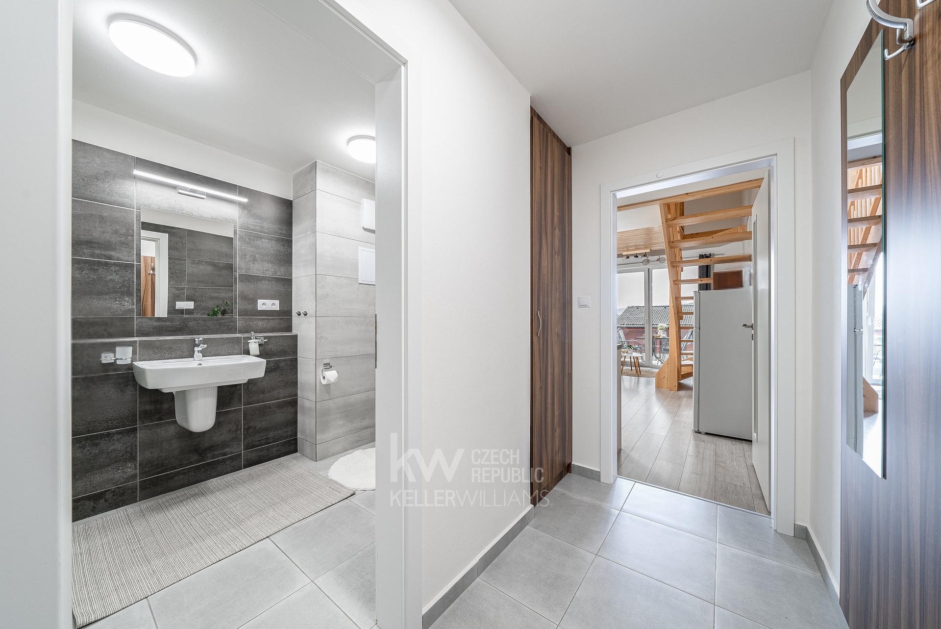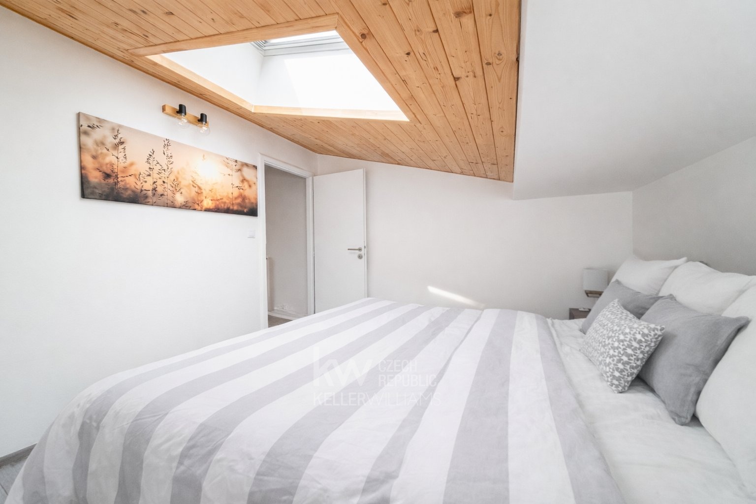 Horní podlaží bylo upraveno a rozšířeno oproti původnímu standardnímu provedení. Reálně tak nabízí přibližně o 5 m² více využitelné plochy, než je výměra uvedená v prohlášení vlastníka. Prodává se dle oficiálně zapsané výměry, budoucí majitel však získává prakticky větší užitný prostor.