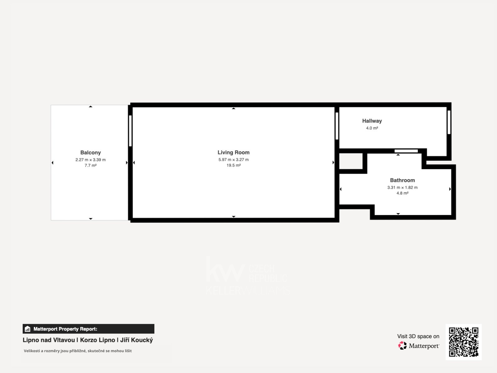 Celková plocha včetně balkonu a sklepa činí 57,9 m².