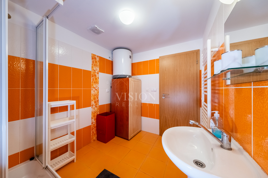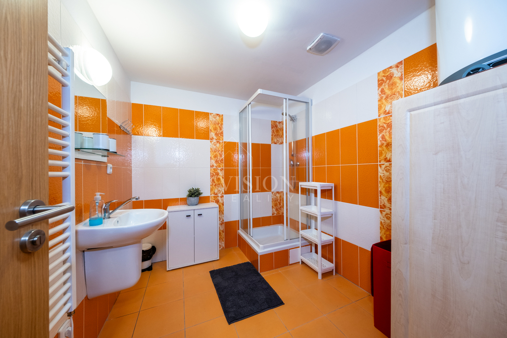 Moderní, světlý a útulný interiér je navržen s důrazem na jednoduchost, čistotu linií a maximální pohodlí. Apartmán je připraven k okamžitému užívání bez nutnosti dalších investic, nachází se v přízemí.