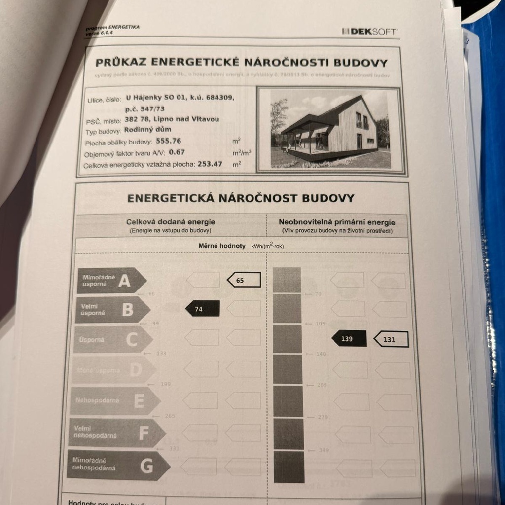 Ukazatel energetické náročnosti budovy:74 kWh/m²