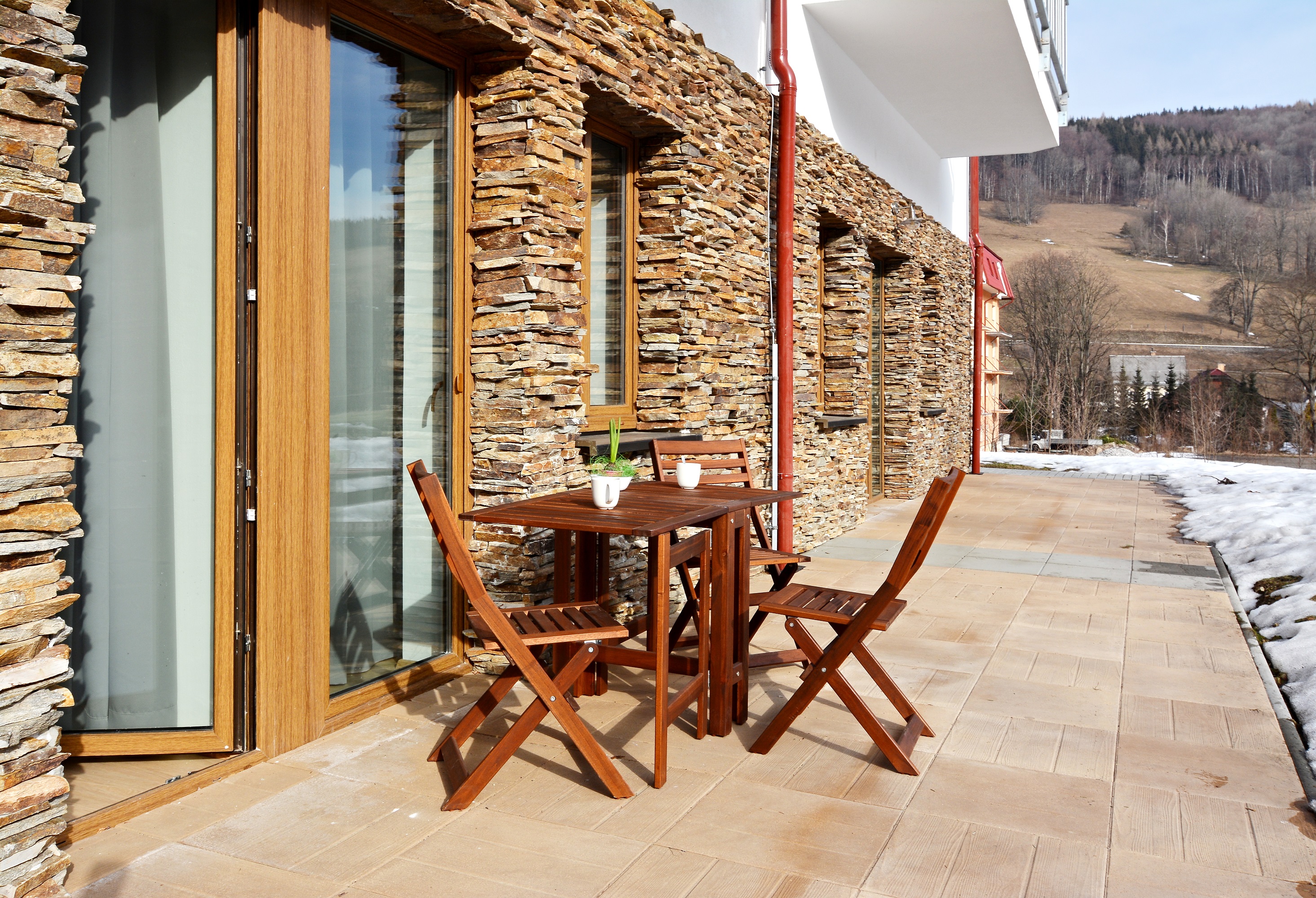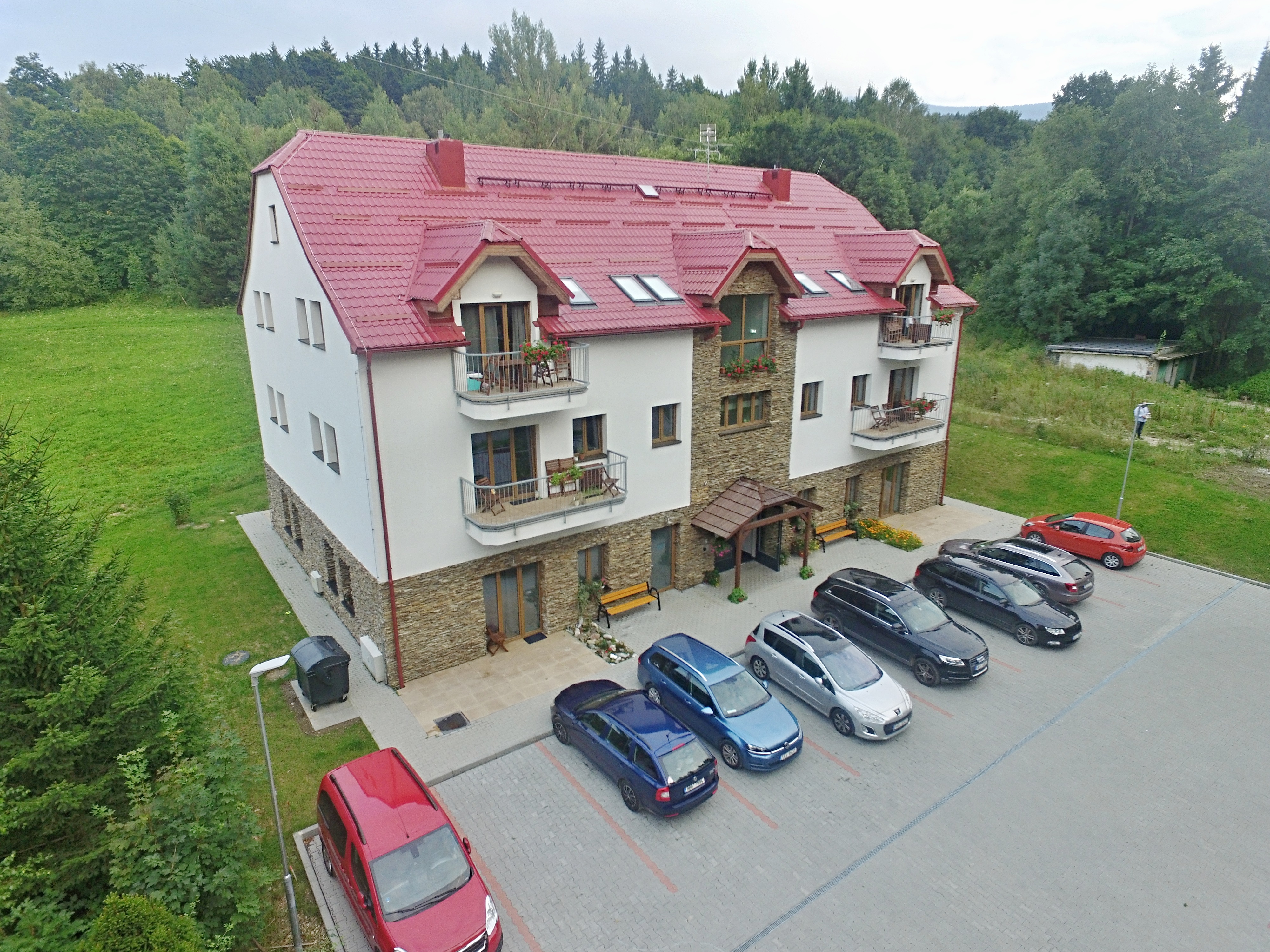Apartmánový dům disponuje 15 apartmány, které byly dokončeny v roce 2018. Apartmány mají ideální polohu pro letní i zimní aktivity v přírodě. Nacházejí se v klidném horském prostředí na pomezí Jeseníků a Kralického Sněžníku, 6-9 km od lyžařských středisek Ramzová, Ostružná a Petříkov, 9 km od Jeseníku, 24 km od Červenohorského sedla. V apartmánu je obývací pokoj s kuchyňským koutem, ložnice, koupelna se sprchovým koutem a WC. Kuchyňská linka je vybavena indukční varnou deskou, digestoří, mikrovlnnou troubou s grilem, myčkou nádobí a velkou lednicí s mrazákem. V obývacím pokoji je komfortní designová rozkládací pohovka s plochou lůžka 160 x 200 cm. Ložnice s velkou manželskou postelí z masivu s luxusní pohodlnou matrací. Veškerý nábytek v pokojích je z masivního buku. Z ložnice je výstup na terasu před parkovištěm. Podlahové vytápění a ohřev TUV zajišťuje vlastní plynový kotel. Apartmán má vlastní měřidla elektřiny, plynu a vody. Vstup do objektu i apartmánu je možný elektronickým klíčem nebo aplikací ve smartphonu. Schodiště a parkoviště jsou monitorovány kamerovým systémem. Apartmán má vlastní elektronický zabezpečovací systém napojený na pult centrální ochrany. V objektu je společná lyžárna / kolárna. O objekt se stará správce. Zajištěn úklid společných prostor. Na fotografiích jsou typové apartmány v objektu. Nábytek a veškeré vybavení na snímcích odpovídá skutečnosti, orientace místnosti a uspořádání nábytku na fotografiích se nemusí shodovat s pozicí místnosti v půdorysu.