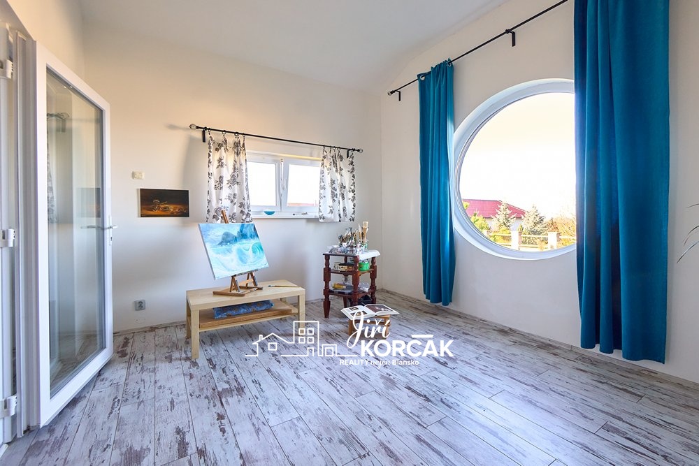 s velkým kulatým oknem, který může posloužit jako pracovna či ateliér.