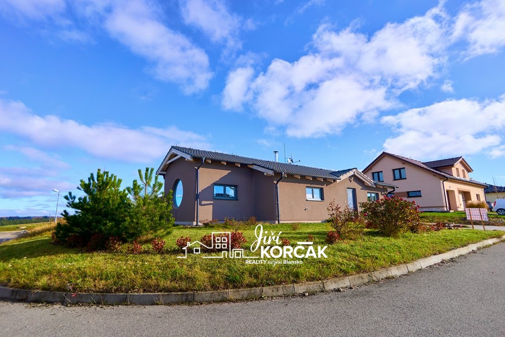 Jedná se o moderní dřevostavbu s užitnou plochou zhruba 85 m², která stojí na pěkném rovinatém pozemku