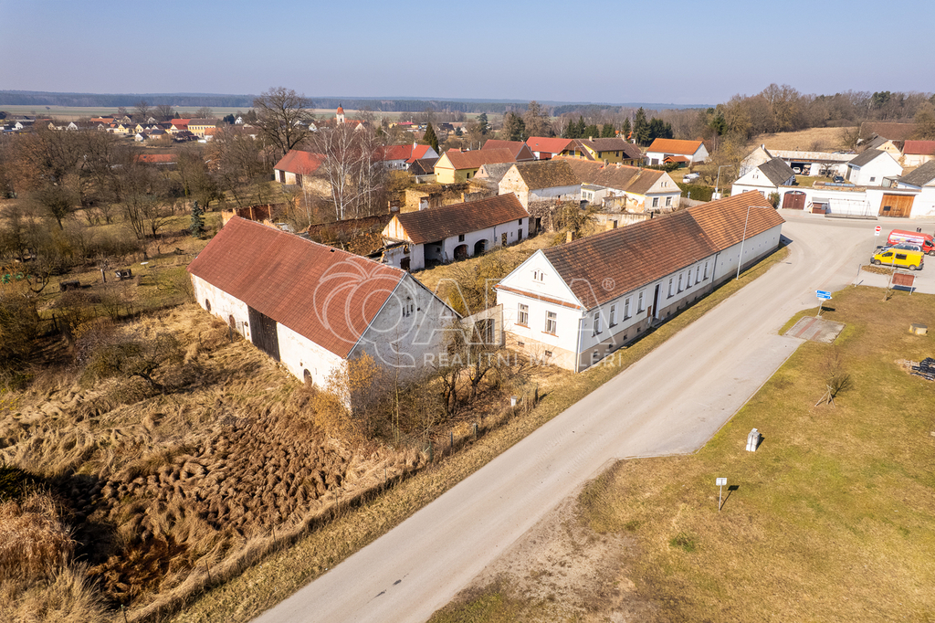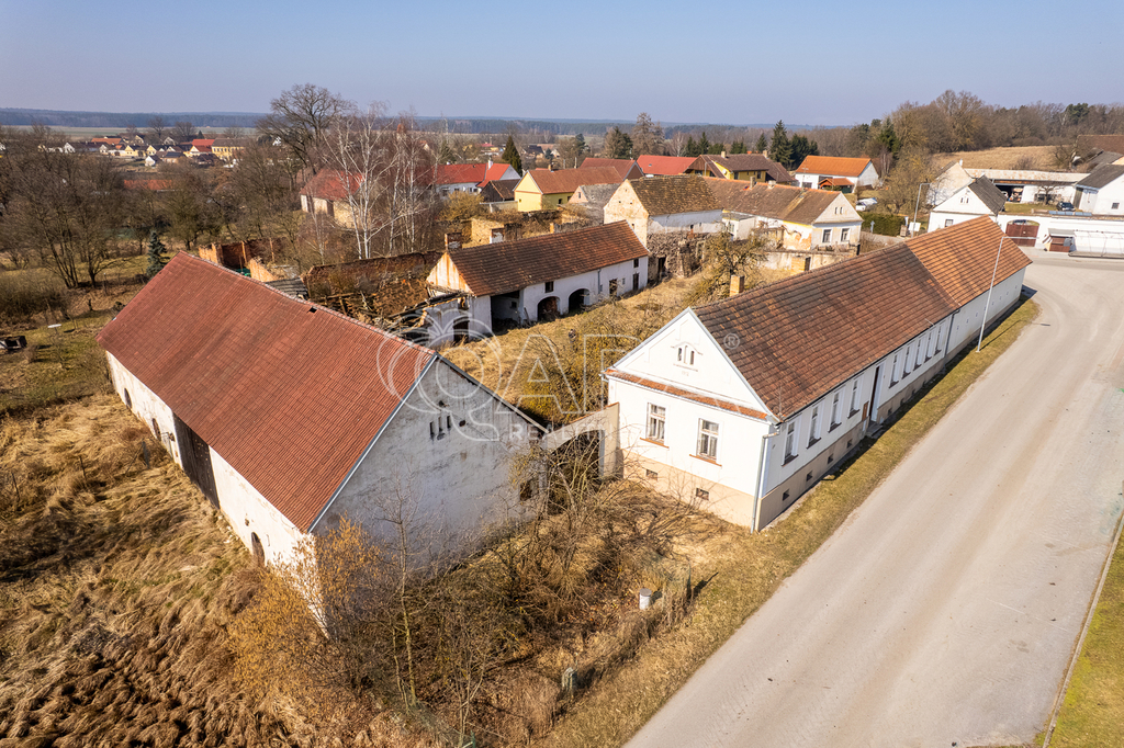 Nabízíme na prodej hospodářskou usedlost s celkovým půdorysem ve tvaru písmene ,,U" a pozemkem 2917 m2 v obci Horní Slověnice u Lišova. Hlavní obytná část po levé straně je dispozičně rozdělena na 3+1 a má svoje číslo popisné. Druhá část sloužila jako ustájení pro domácí odchov a chlévy. Na pozemku se dále nachází prostorná stodola se zastavěnou plochou 272 m2 a ostatní stavby pro uskladnění dřeva a podobně. Vytápění bylo řešeno kachlovými kamny. Hospodářské stavby navazují na obytné části. Součástí této nemovitosti je i přilehlý pozemek za stodolou o velikosti 765 m2. Obec Horní Slověnice se nachází 6 km od Lišova a 10 km od Třeboně, jde o velmi oblíbenou turistickou destinaci (rybník Rožmberk, Slověnický mlýn, rybník Dvořiště). Přímo okolo této nemovitosti vede jedna ze známých cyklotras číslo 1243, která spojuje Horní Slověnice a obec Hůrky. Velmi zajímavá příležitost, jak pro bydlení tak pro investici. Neváhejte nás kontaktovat pro více informací.