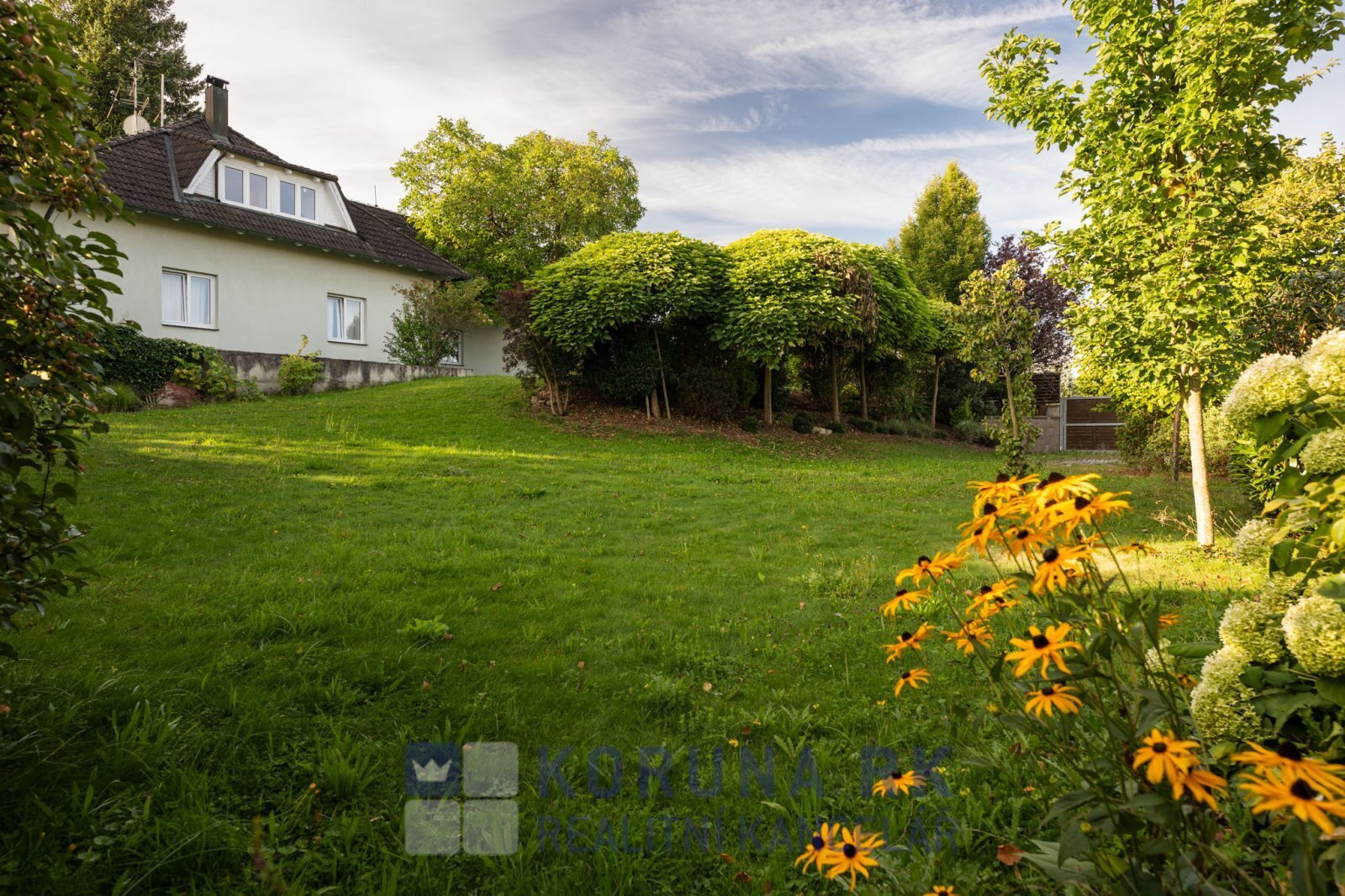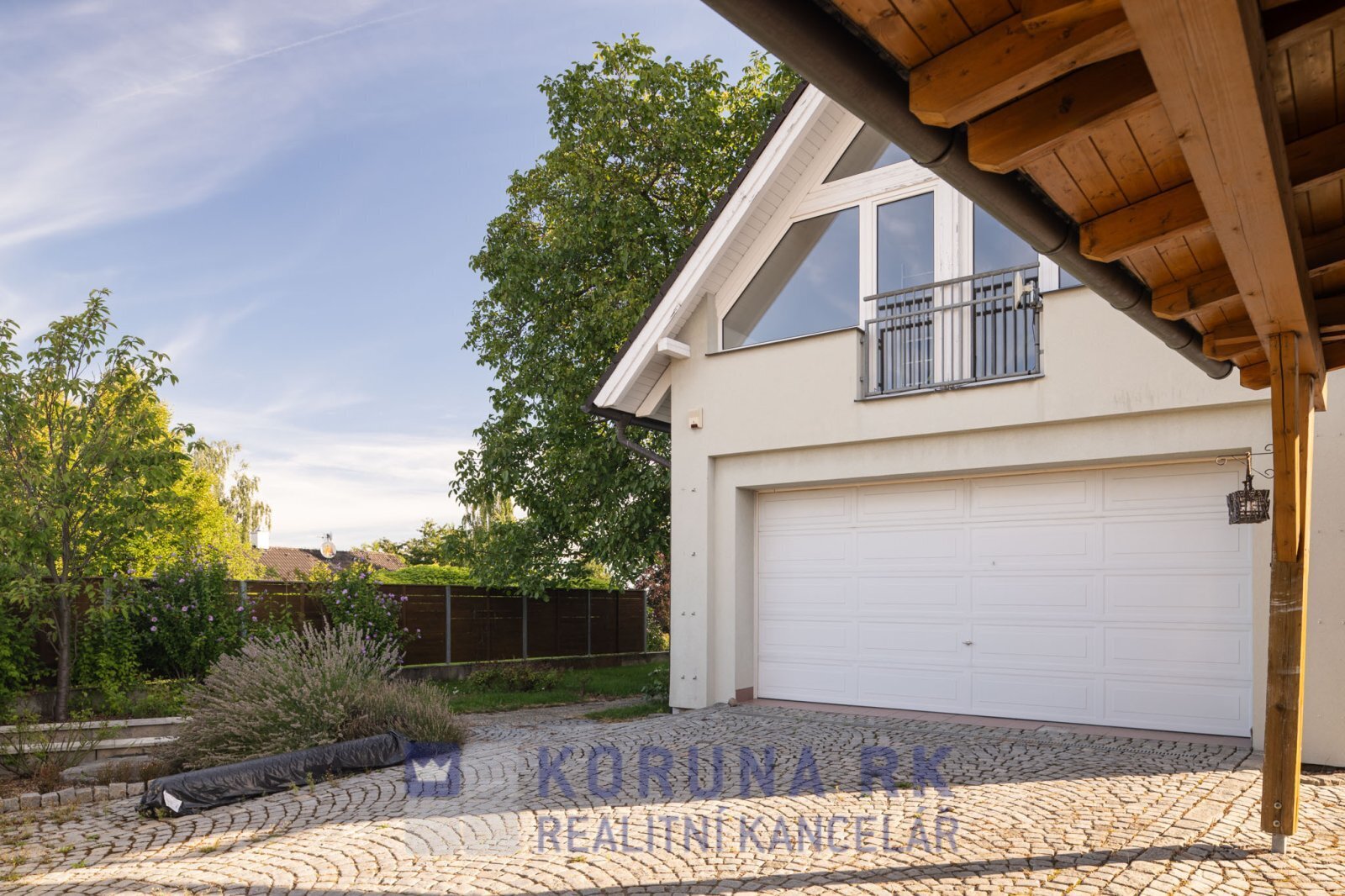 V přízemí je prostorná garáž pro 2 OA na kterou navazují technické a skladové prostory, šatna a vstup se schodištěm do ateliéru (garsoniery). Hlavní obytné prostory jsou ve východní části stavby, kdy v přízemí je prostorný obytný pokoj s jídelnou, kuchyní a kachlovými kamny umístěnými přibližně uprostřed tohoto prostoru, dále je v přízemí ložnice, koupelna s WC a hala se schodištěm do podkroví. Z obytného prostoru je možný výstup na terasu. V podkroví jsou z haly přístupné 2 velké pokoje, koupelna s WC, která je průchozí do šatny a též ateliér. U domu se nachází přístřešek na další auto, nebo karavan a dále dřevěná kolna na nářadí a dřevo. Zahrada je s okrasnými keři, v jihovýchodní části zahrady je skleník.