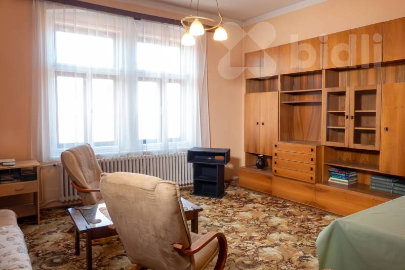Vysoké stropy (3,2 m), původní dispoziční řešení, oddělená koupelna a toaleta (zděné jádro).