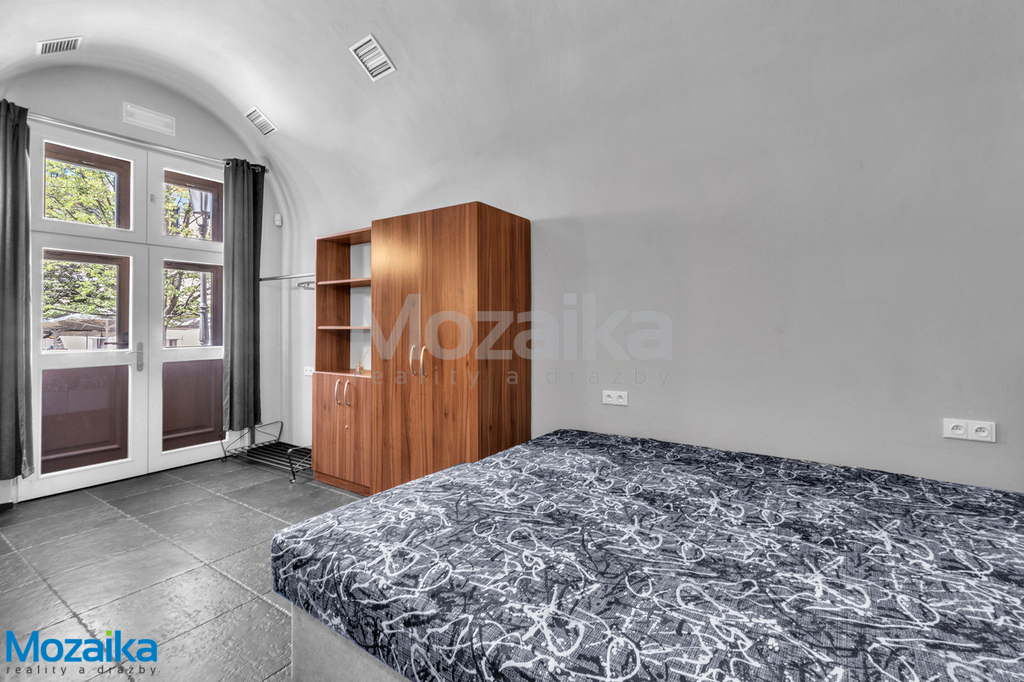 Co se týče dispozice bytu, je důležité zmínit, že mezi obytným prostorem a ložnicovou částí není klasická příčka s dveřmi, ale místo toho je zde použit závěs. Toto řešení dodává bytu otevřený a vzdušný charakter, nicméně vzhledem k této specifické dispozici není byt vhodný pro rodiny s dětmi. Jedná se skutečně o ideální prostor pro jednotlivce nebo bezdětný pár, který si užije komfortní bydlení v centru města, navíc je možné bydlení s pejskem. Jednou z největších předností tohoto bytu je možnost využívání krásné zahrady za domem s přístřeškem pergoly. Tento venkovní prostor slouží všem nájemníkům v domě a je jako stvořený pro příjemné letní večery, grilování s přáteli, ranní kávu na čerstvém vzduchu nebo jen tak pro relaxaci uprostřed zeleně. Představte si, jak si po práci odpočinete v zastíněné pergole s dobrou knihou nebo jak si o víkendech užijete venkovní posezení se svými blízkými. Tento bonus výrazně zvyšuje kvalitu bydlení a vytváří pocit soukromí i v rámci městského prostředí. Pro majitele automobilů máme skvělou zprávu. Součástí nabídky je možnost pronájmu parkovacího stání v bezpečné a oplocené zahradě za domem. Za symbolický poplatek pouhých 1 000 Kč měsíčně tak máte zajištěné parkování bez starostí o hledání místa na přeplněném náměstí. Vaše vozidlo bude v bezpečí a vždy po ruce.