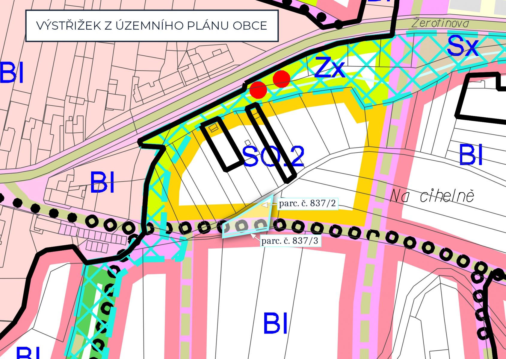- parcely č. 837/2 a 837/3 zapsané na listu vlastnictví 1595