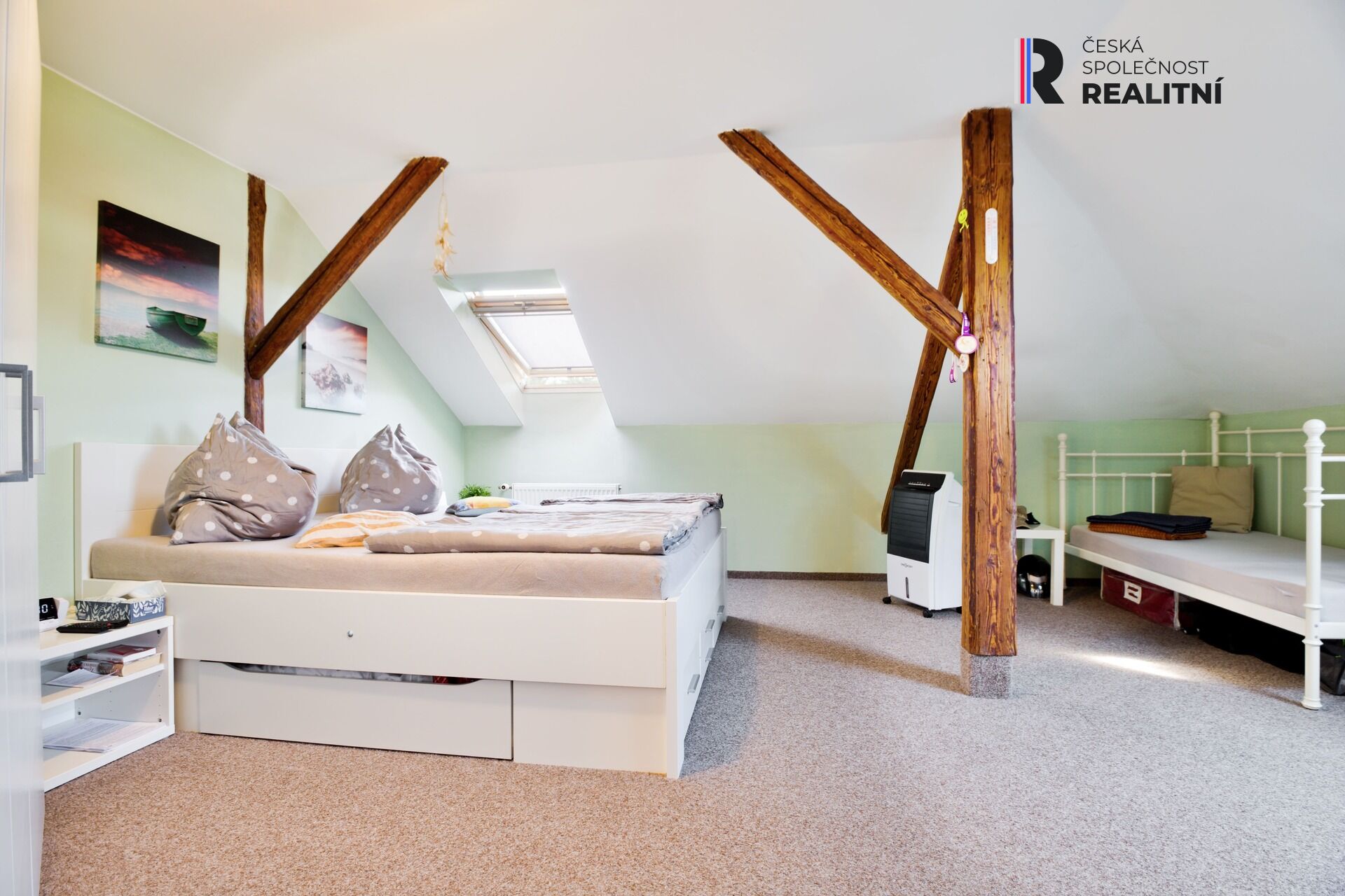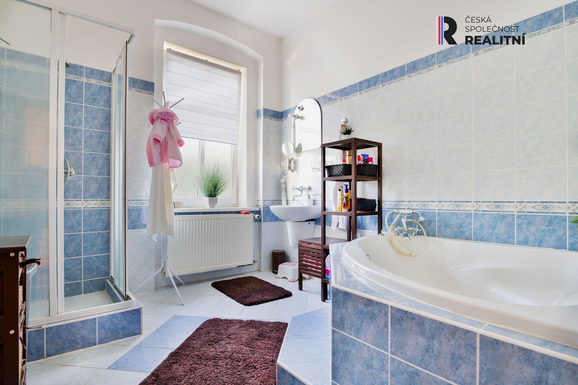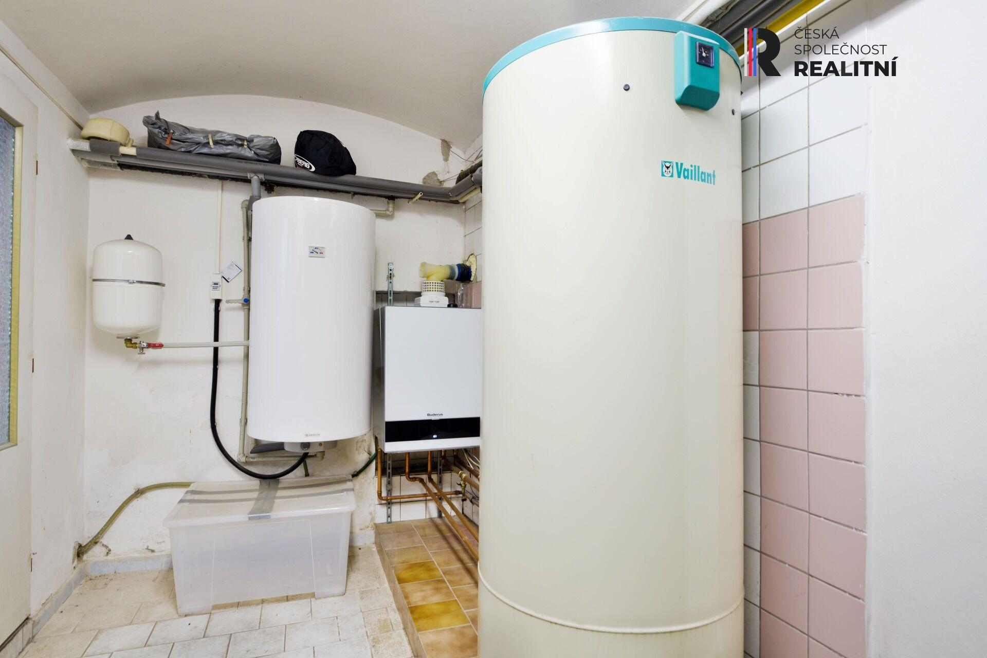 Dále sprcha, sociální zařízení (pisoár a toaleta), společenská místnost 20m2 se vstupem na zahradu či po nově vybudovaném dřevěném schodišti do prostorné bytové jednotky 2+1, s koupelnou s vanou, sprchou a odděleným WC.