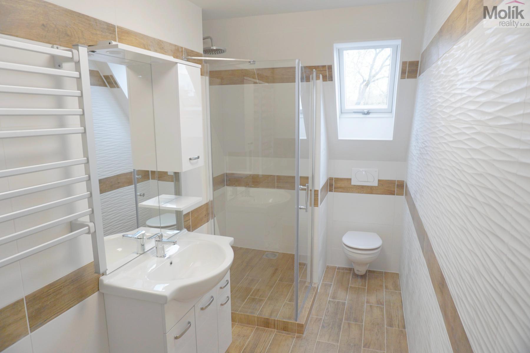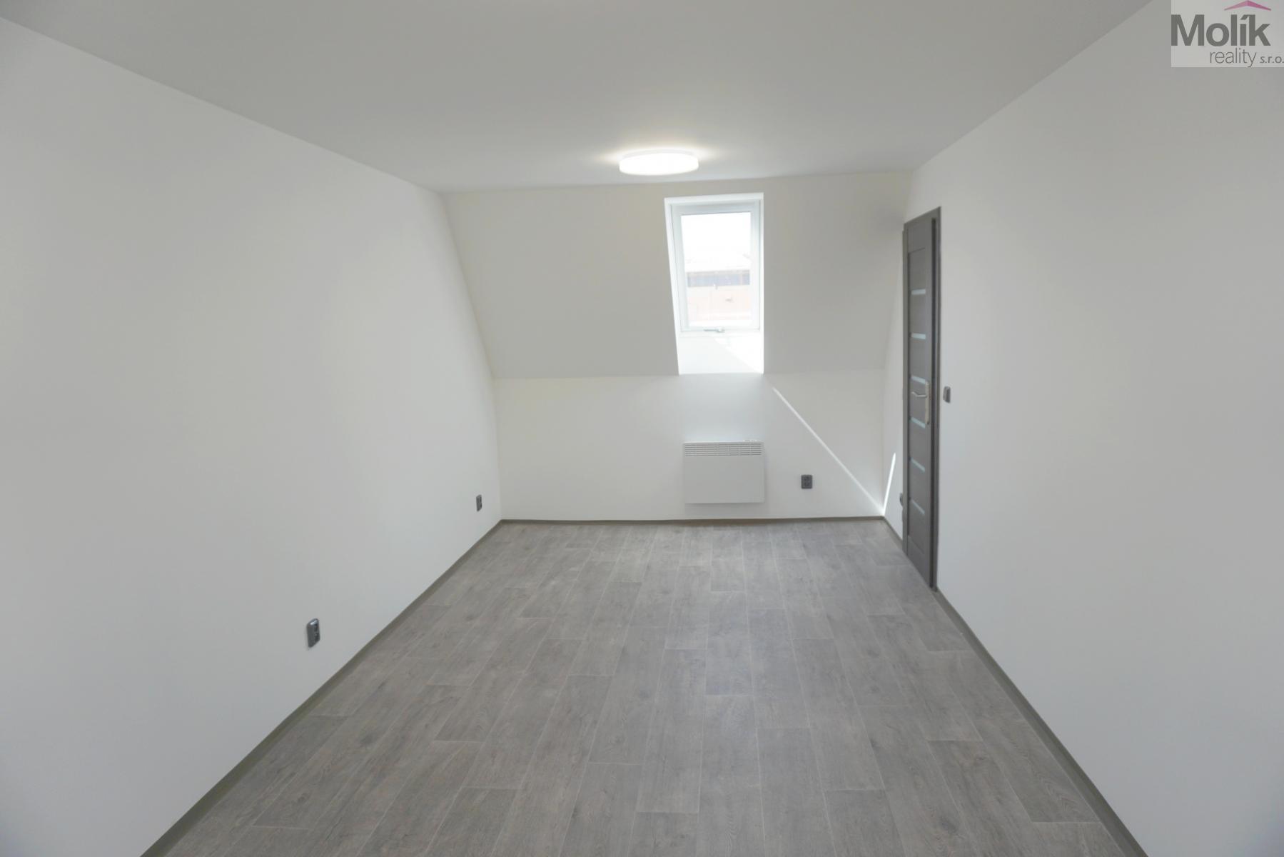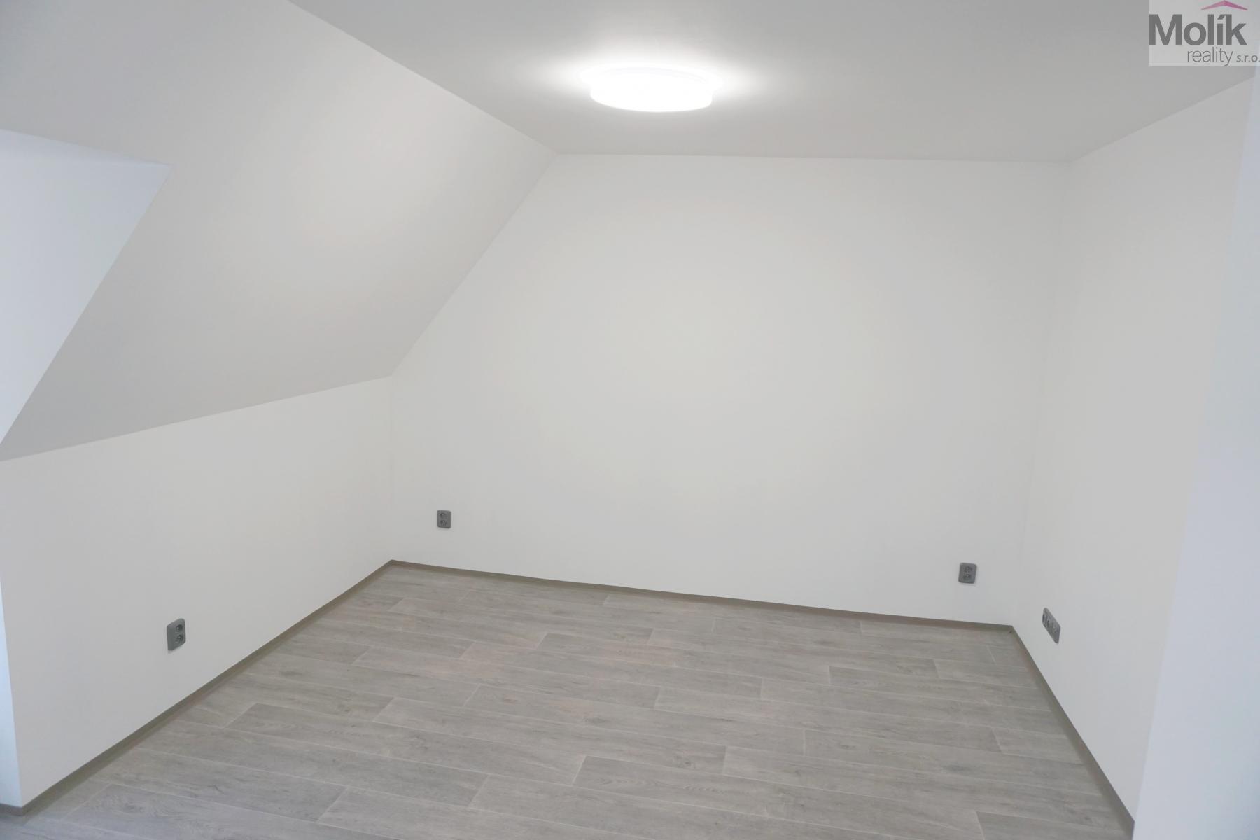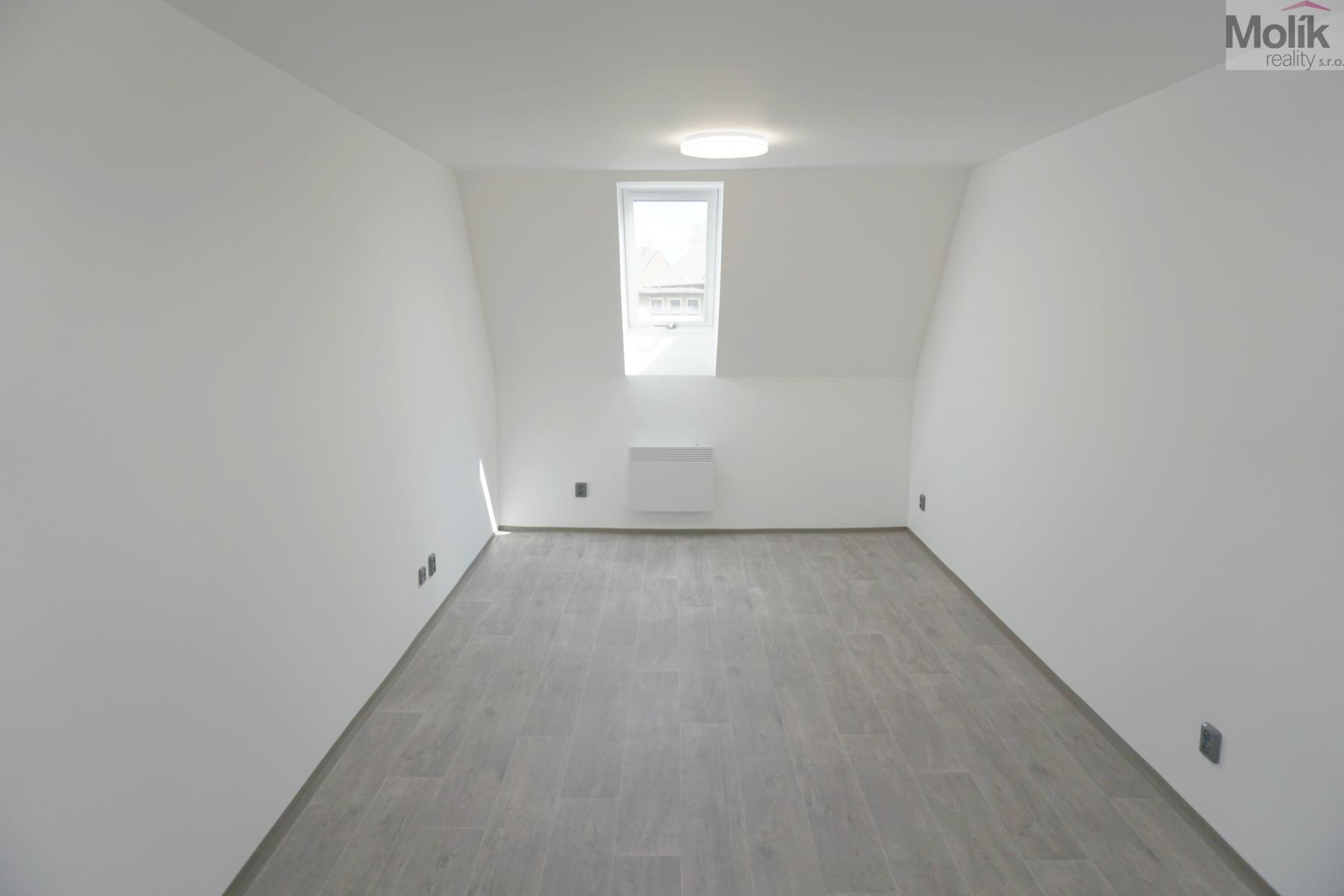 Jedná se o podkrovní byt, který prošel zdařilou, kompletní rekonstrukcí - nová kuchyňská linka včetně horkovzdušné trouby, varné desky, myčky.., nová koupelna se sprchovým koutem, keramickými obklady a dlažbou, nové podlahové krytiny, vnitřní dveře, střešní okna, izolace celého podkroví, nová elektroinstalace atd. ...........