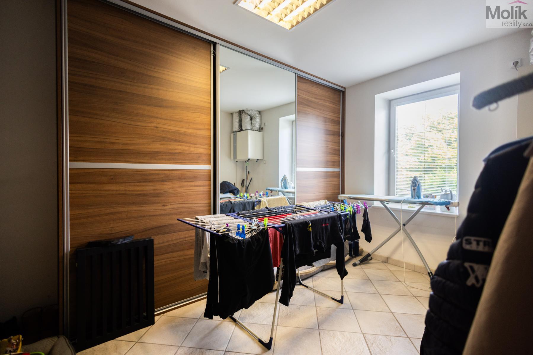 Nabízí tři samostatné pokoje, kuchyň, koupelnu s vanou a vířivkou, saunu a velkou technickou místnost, ve které je pračka, sušička, žehlící prkno i věšák na prádlo. Celý byt působí velmi útulně, je světlý, moderní a prakticky řešený.