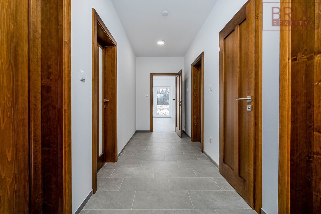Nabízíme k prodeji novostavbu rodinného domu. V současné době bylo vydáno stavební povolení a začínají přípravné práce před výstavbou. Termín dokončení se předpokládá na Q1 2027 a je možné navštívit vzorový dům. Jedná se o rodinný dům s dispozicí 4+kk o 125 m2. Domu dominuje velký obývací pokoj s kuchyňským koutem a praktickou komorou pro skladování potravin. Z obývacího pokoje je přímý vstup na terasu, kde budete moci trávit letní večery a zvětší Vám tak Váš obývací pokoj o kus přírody. Hlavní ložnice i další dva pokoje jsou dostatečně velké pro zřízení velkých vestavěných skříní a také světlé. V koupelně najdete sprchový kout i vanu, umyvadlo a toaletu. Další samostatná toaleta je také ještě na chodbě. Technická místnost se nachází hned u domovních dveří. Velkým bonusem domu je tepelné čerpadlo a podlahové vytápění, díky kterému bude v celém domě příjemné klima. Dům má tepelně izolační trojskla a jistě Vás také zaujme příprava na zabezpečovací systém a příprava na venkovní kamery. Tepelné čerpadlo může být ovládané přes aplikaci. Voda i kanalizace je veřejná. Pozemek má celkem 826 m2, takže místa tu budete mít opravdu dost. Je zde také počítáno se dvěma parkovacími stáními. V širším okolí najdete veškerou občanskou vybavenost, na nájezdu na D1 jste jen za 1 minutu. Do přírody, za relaxem i sportem budete moci chodit do nedalekých místních lesů a nebo třeba k vodní nádrži Švihov. Nenechte si utéct tuto nabídku a přijďte se podívat na prohlídku.