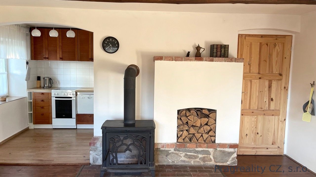 Přízemí domu je dispozičně řešeno jako 2+1, 44m2 užitné plochy. Obývací pokoj je propojený s kuchyní, v místnosti jsou stylová krbová kamna, dále vstupní hala, ložnice, koupelna se sprchovým koutem (ohřev vody el. bojler) a schodiště do podkroví.