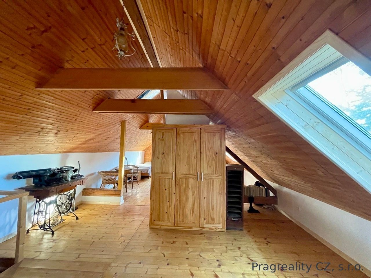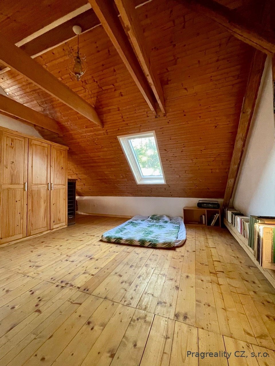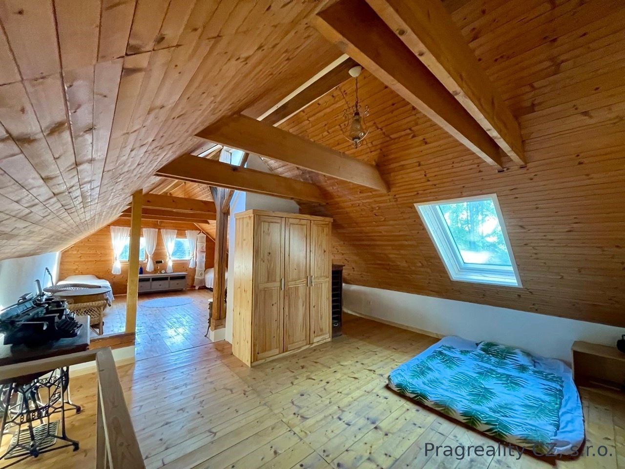 Podkroví má užitnou plochu 49m2 je obytné a užívané jako ložnice s obývací částí, lze případně rozdělit na 2 pokoje. Vytápění je el.přímotopy, krbovými kamny, ohřev vody el. bojlerem.