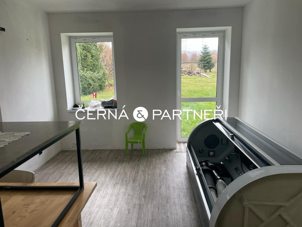 Nemovitost, původně dvojdomek, právě prošel rozsáhlou rekonstrukcí. Nové podlahy, koupelna se sprchovým koutem a vanou, osvětlení, elektřina, přípojka plynu, plastová okna, dveře na zahradu, kuchyňská linka se spotřebiči (dvě trouby, varná deska), gratinový dřez s baterií. V komíně je nová vložka a střecha je nová před 2 lety. Dům je celý zateplen a odizolován.