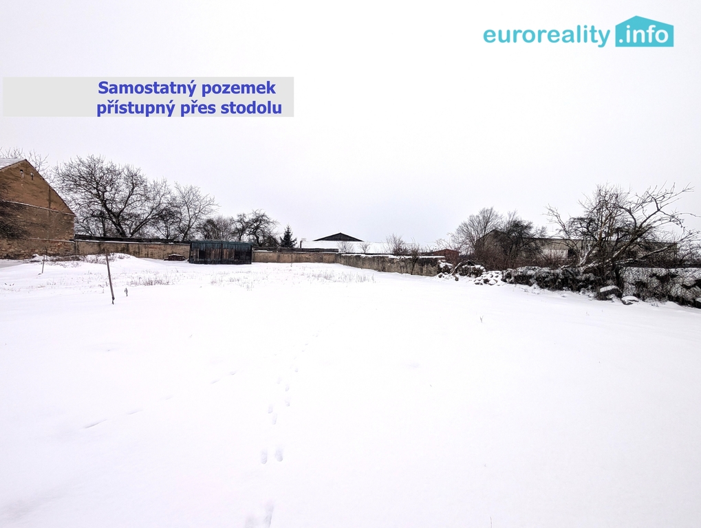 Usedlost má celkovou velikost pozemků 2 467 m2. V areálu naleznete patrovou obytnou část, zachovalou stodolu, chlévy, dřevník a velkou zahradu. Nemovitost je napojena na elektřinu, vodovod a kanalizaci. K disposici je i studna.