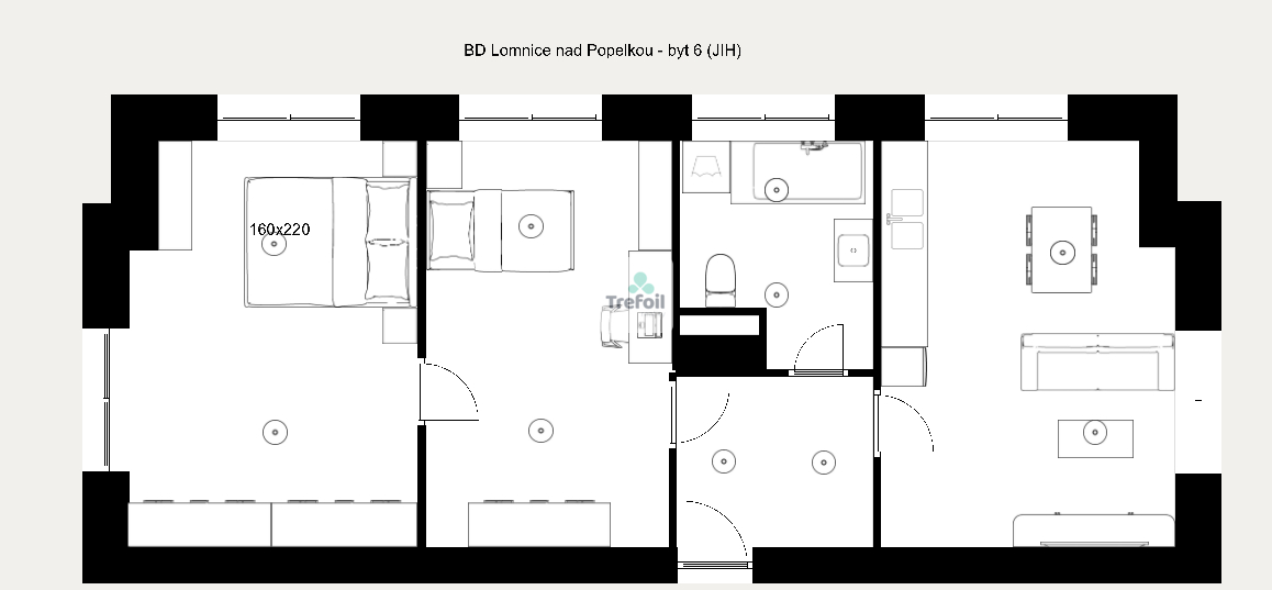 Nabízíme prostorný byt 1+1 o velikosti 67,3 m² v malebném městě Lomnice nad Popelkou, na rozhraní Krkonoš a Českého ráje.