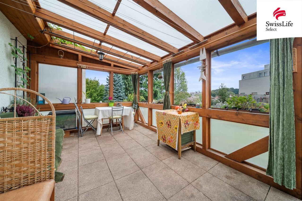 Výrazným benefitem tohoto podlaží je prostorná terasa se zimní zahradou, která je díky posuvným oknům využitelná po celý rok a zároveň slouží jako samostatný druhý vstup do domu. Terasa nabízí klidné místo pro odpočinek i posezení s rodinou a přáteli a významně rozšiřuje obytný prostor domu.