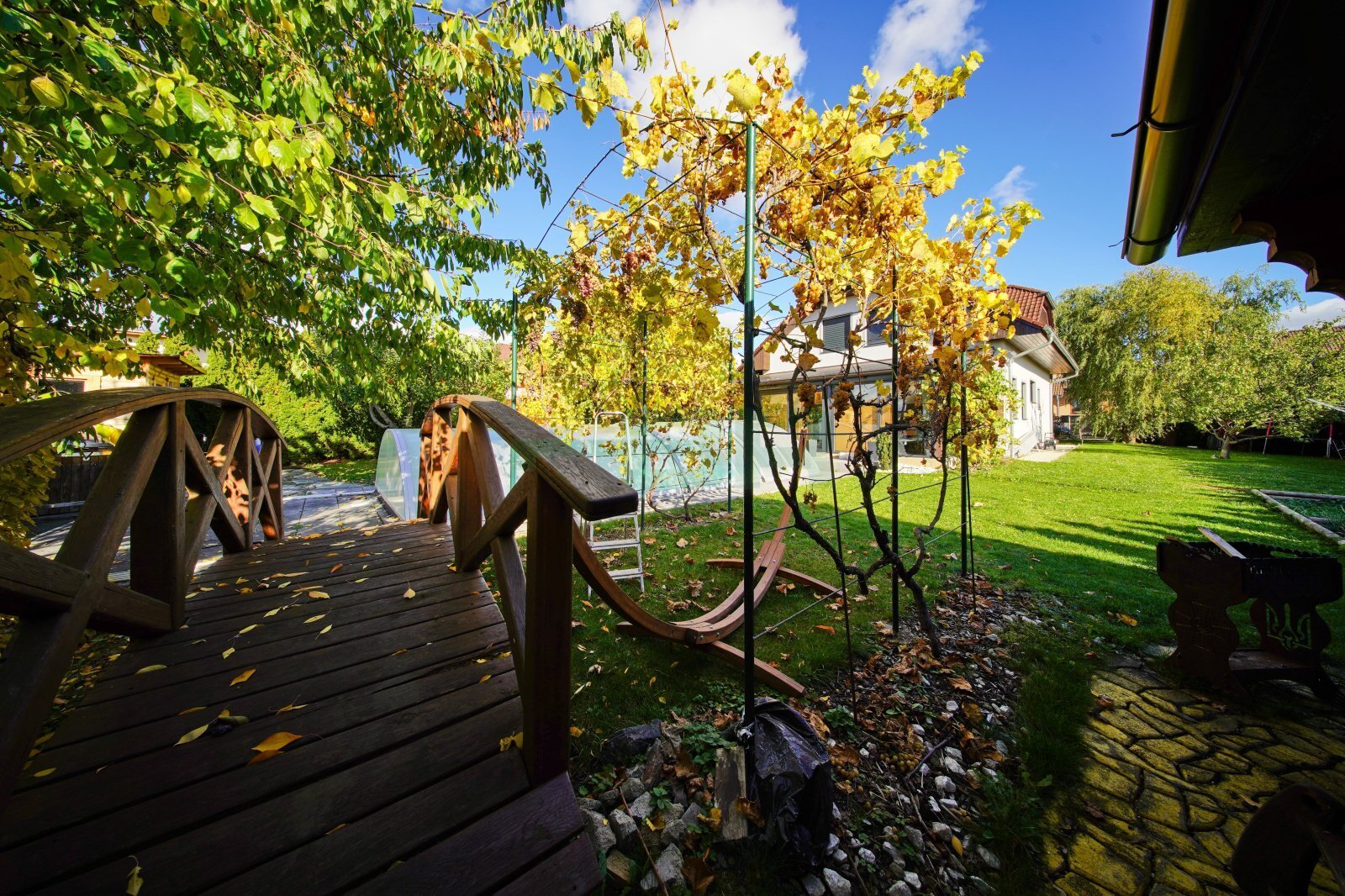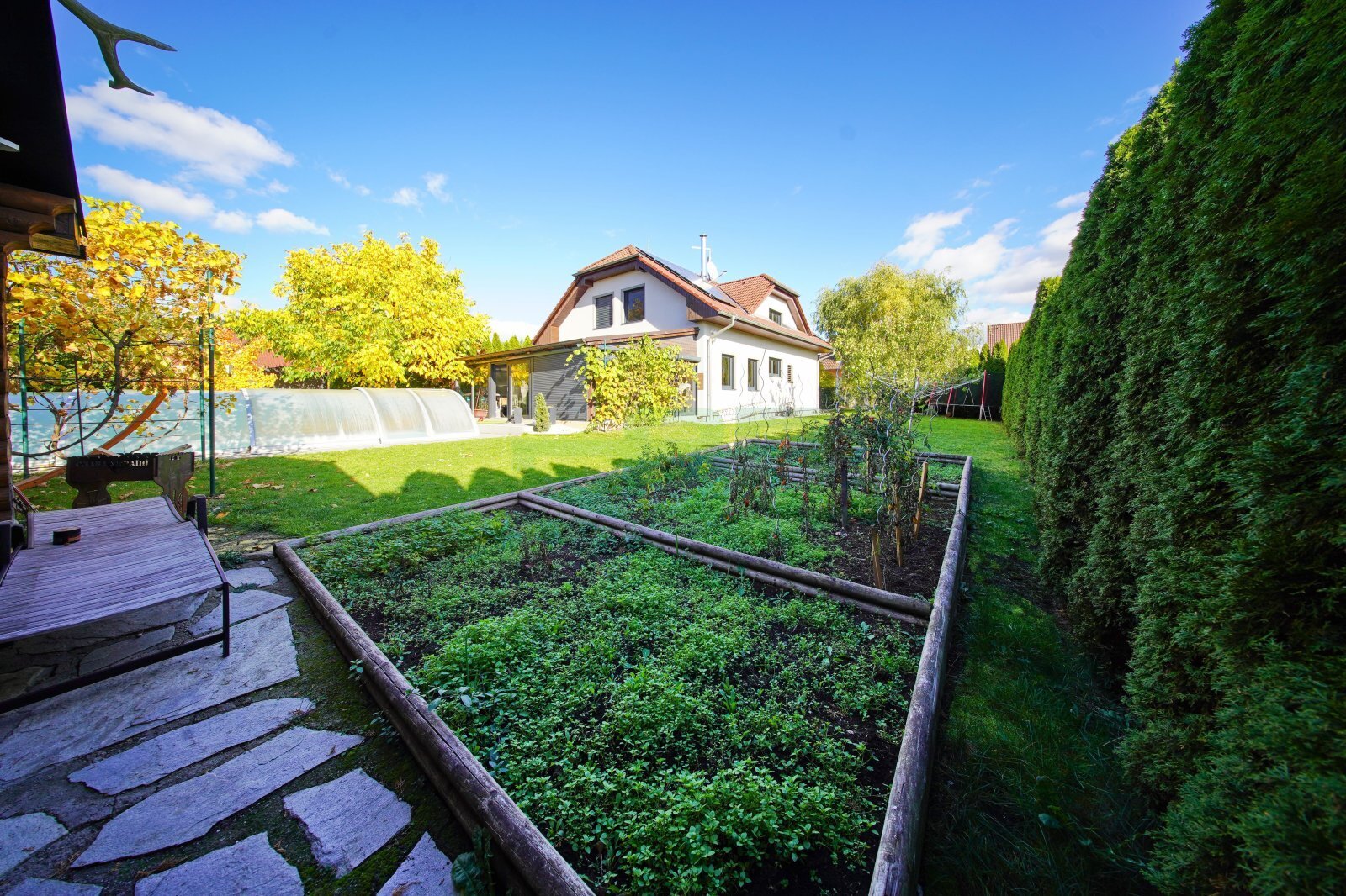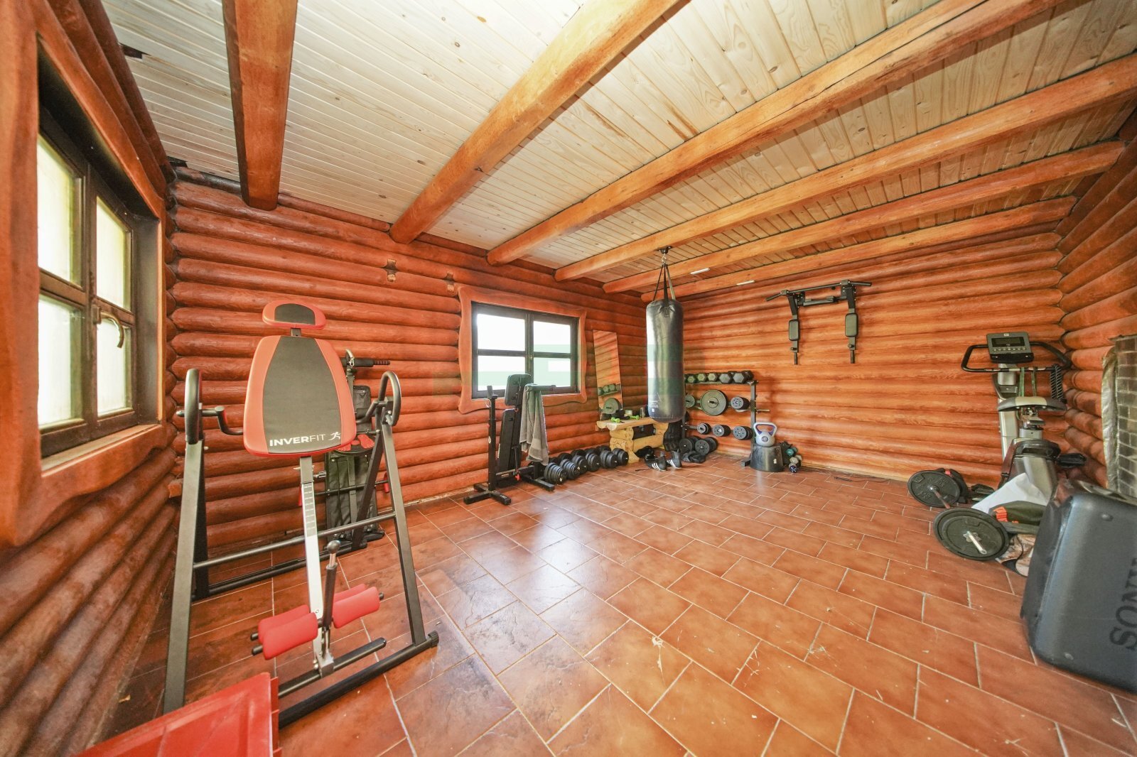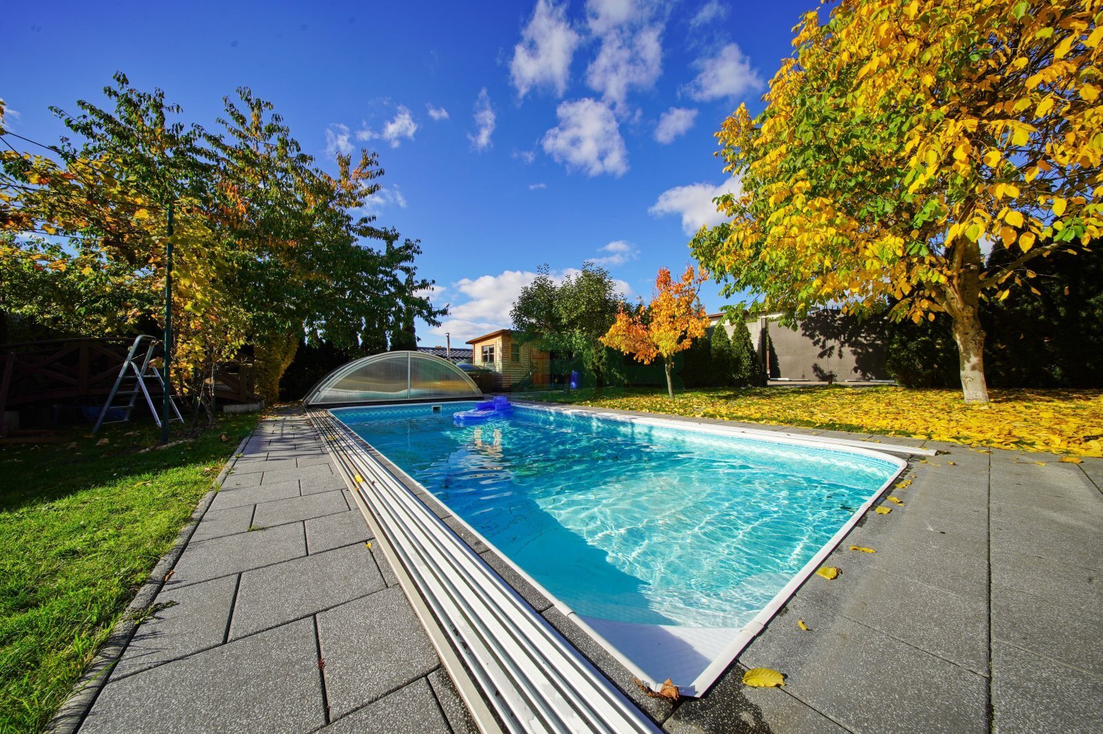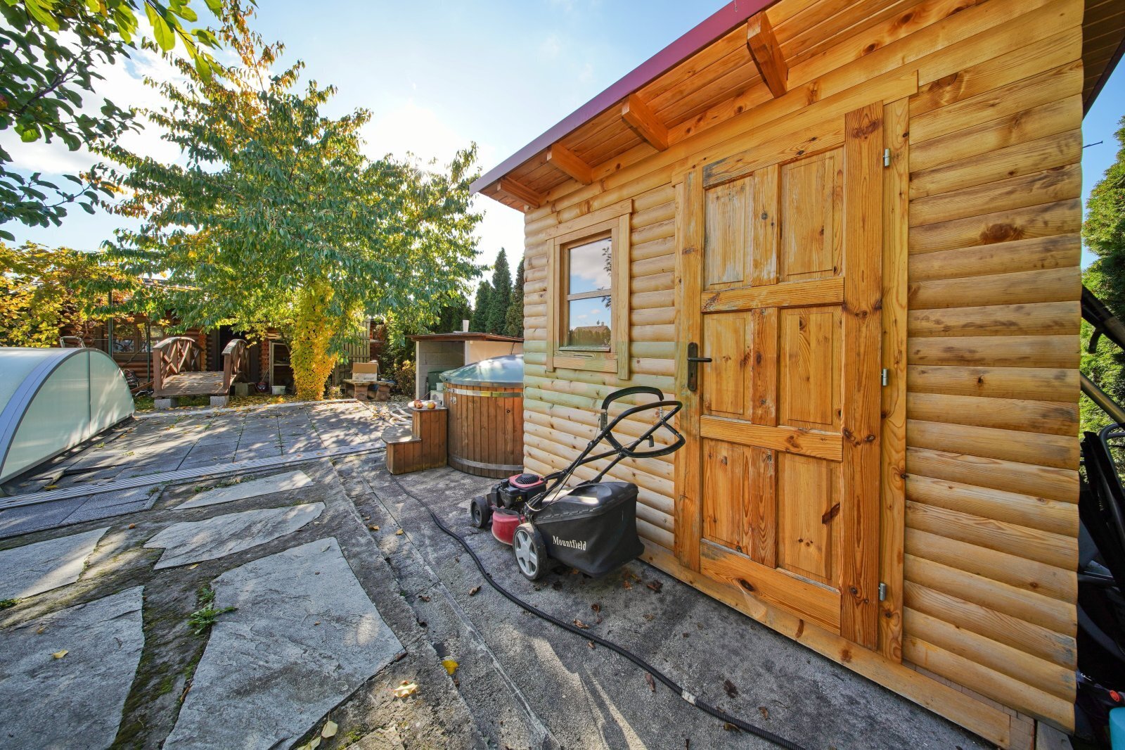Dispozice 5+kk, 2x terasa, šatna, dvojgaráž, krytý bazén, kolna, zahradní roubenka se saunou, venkovní vířivka.