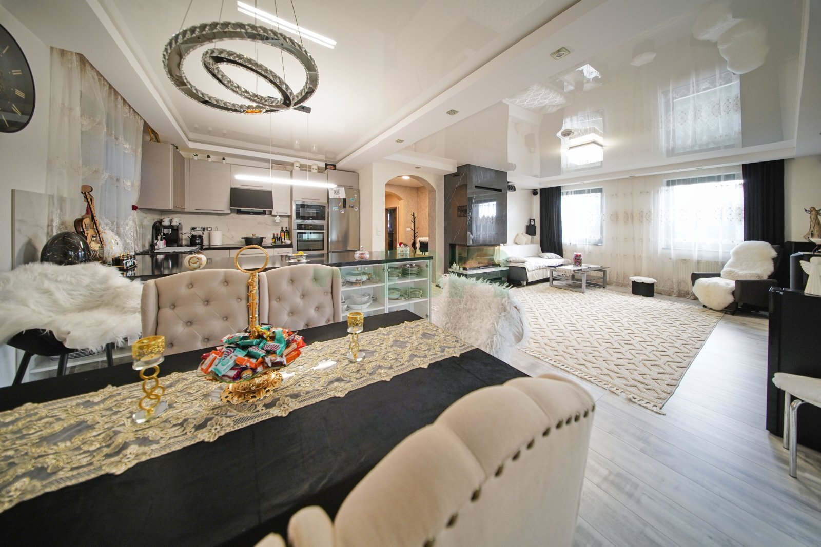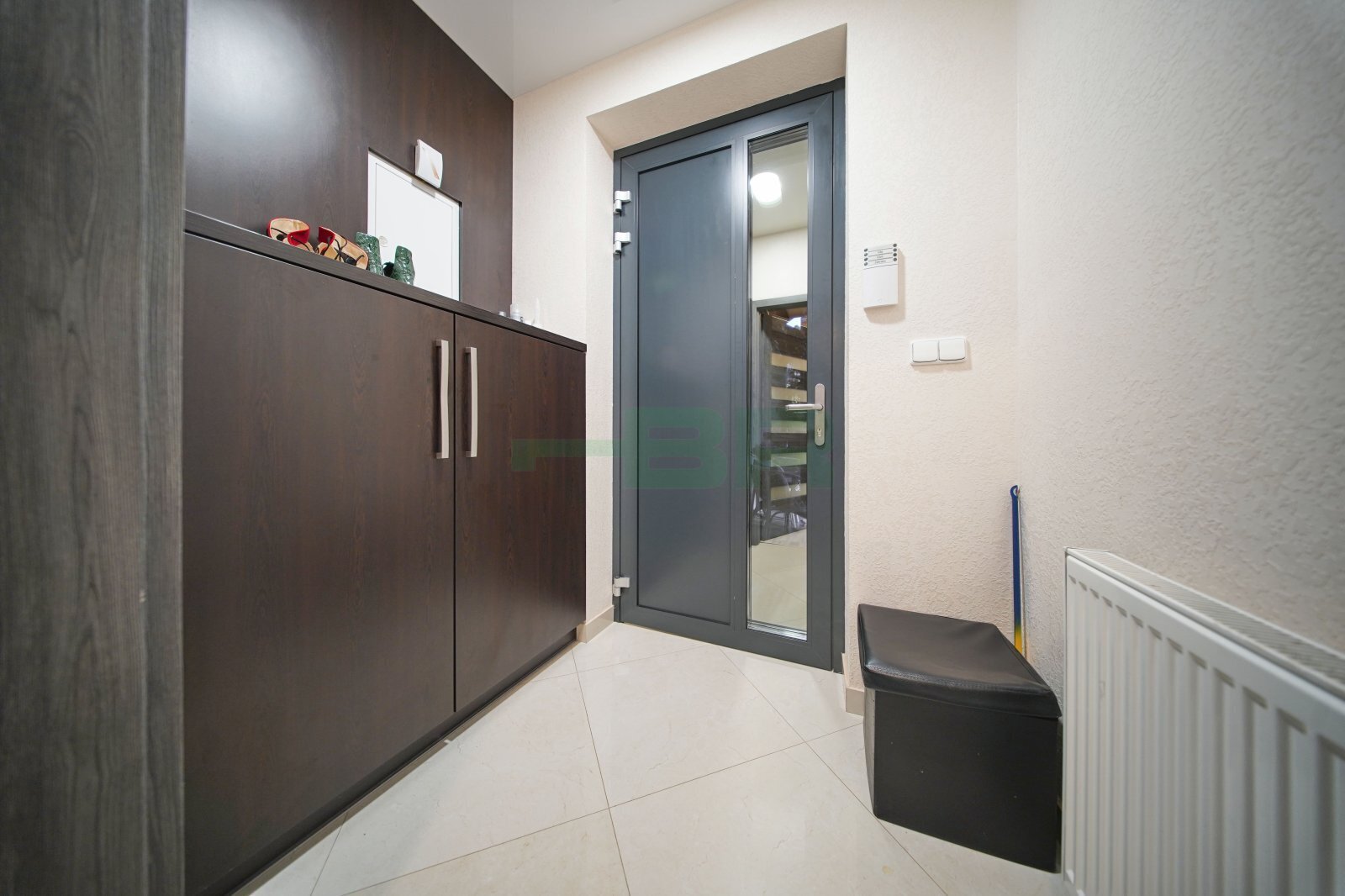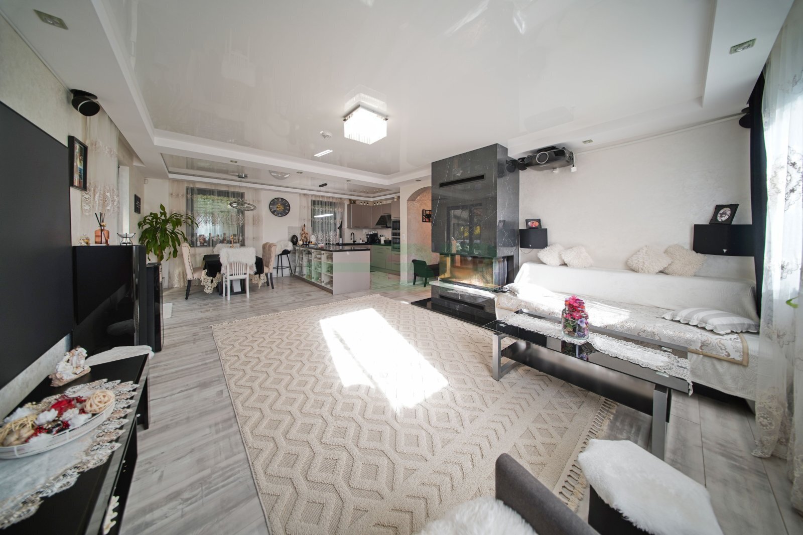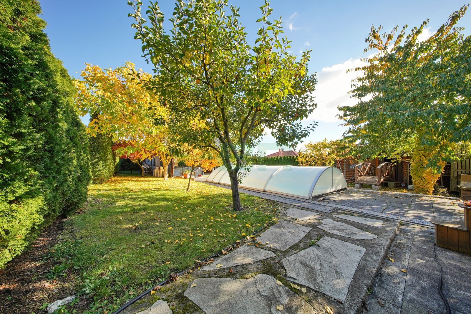 Dispozice 5+kk, 2x terasa, šatna, dvojgaráž, krytý bazén, kolna, zahradní roubenka se saunou, venkovní vířivka.