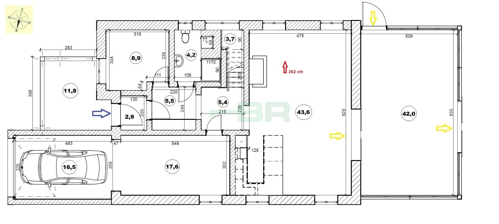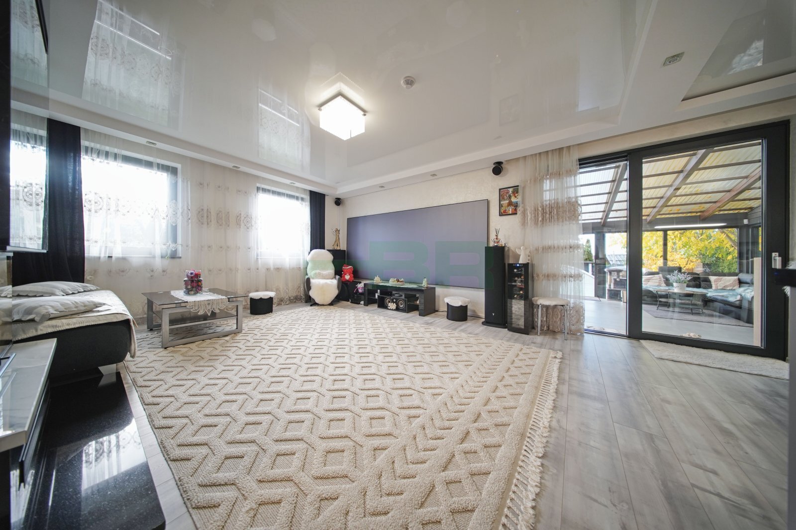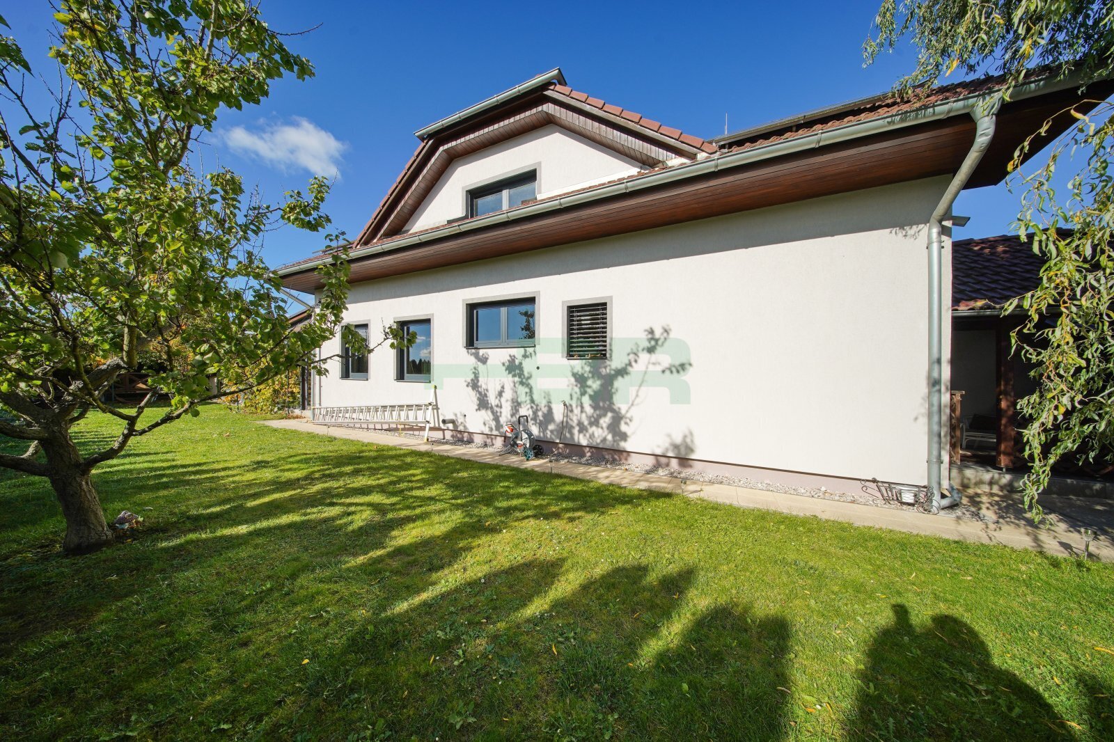Obytná plocha 165 m2 + terasy 53,8 m2 + dvojgaráž 34,1 m2 + roubenka se saunou 34,2 m2 (z toho sauna 7,1 m2) + kolna 5,7 m2. Celková užitná plocha 293 m2!