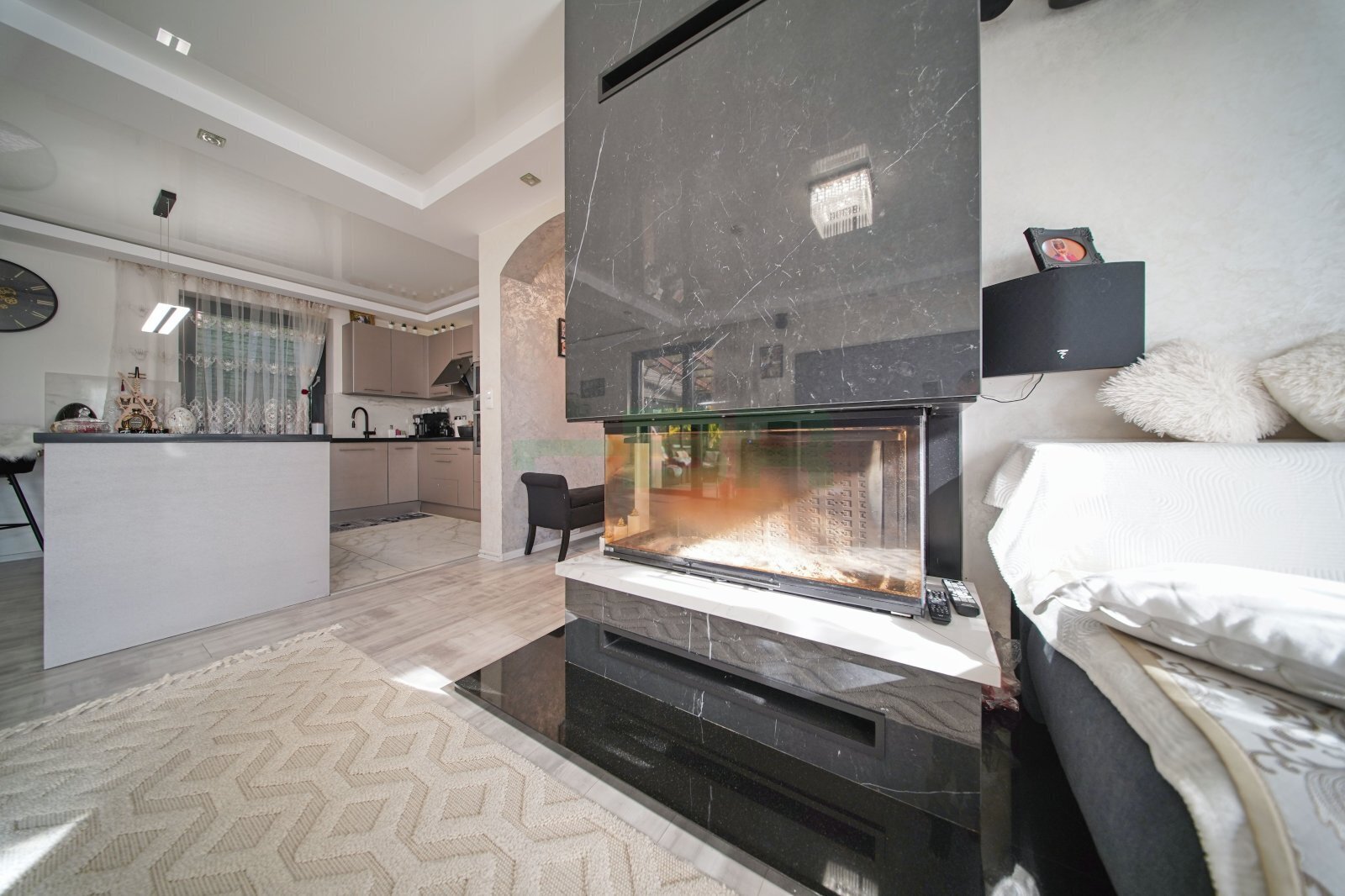 Vytápění tepelným čerpadlem vzduch – voda, ohřev vody bojlerem. V kuchyni, v koupelnách a na chodbách podlahové topení (voda). Lokálně možno vytápět krbem. Nízká potřeba elektřiny (6.400,-Kč/měs.).