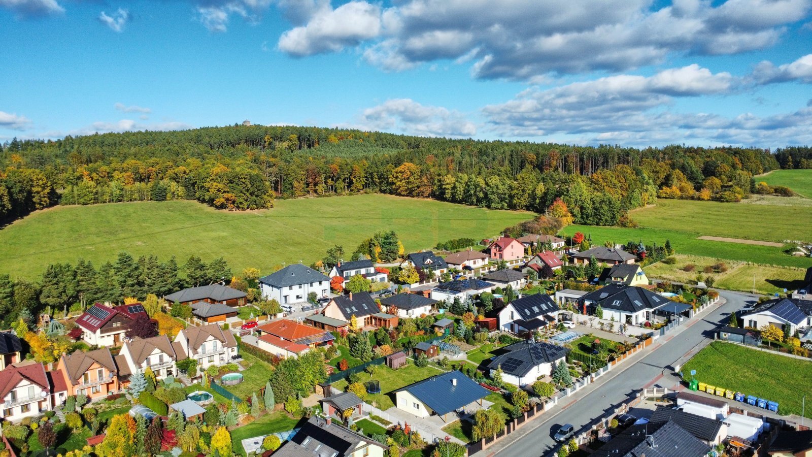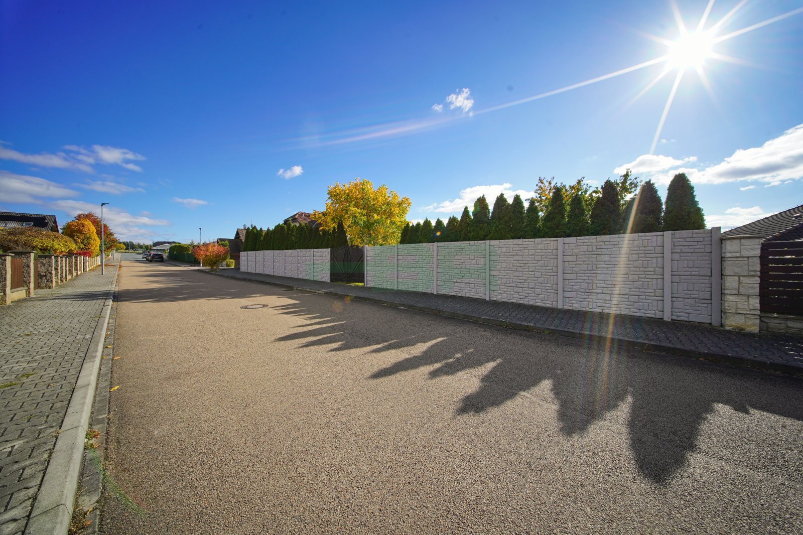 Velká parcela 977 m2 - rovinná, oplocená. Absolutní soukromí – kombinace plotu z betonových dílců a pletiva se vzrostlými tůjemi. Na parcelu není vidět z žádné strany.
