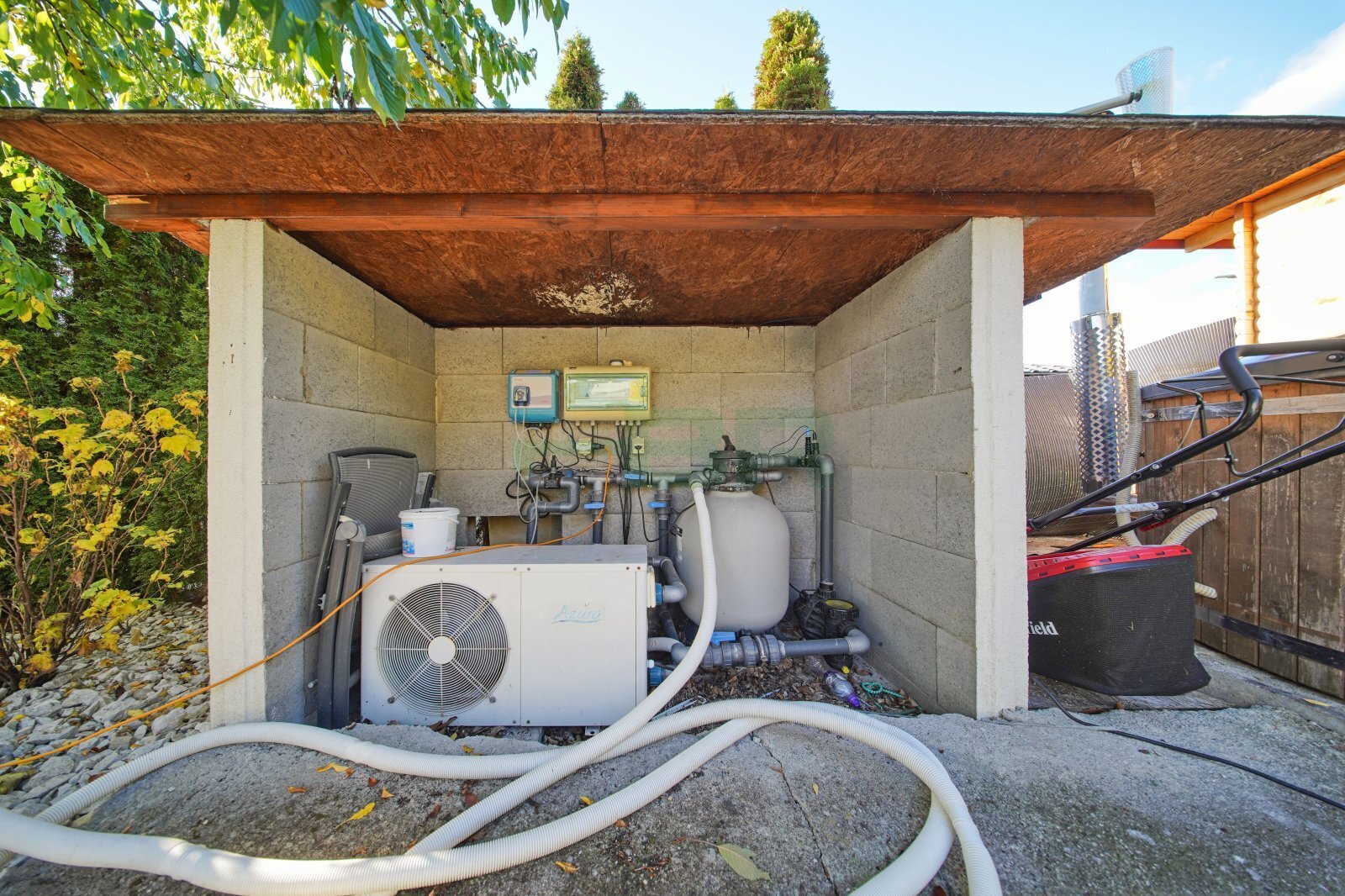 Velký krytý bazén (3,6 x 8,2) se slanou vodou, vyhřívaný tepelným čerpadlem a s automatickým dávkovačem chemie.
