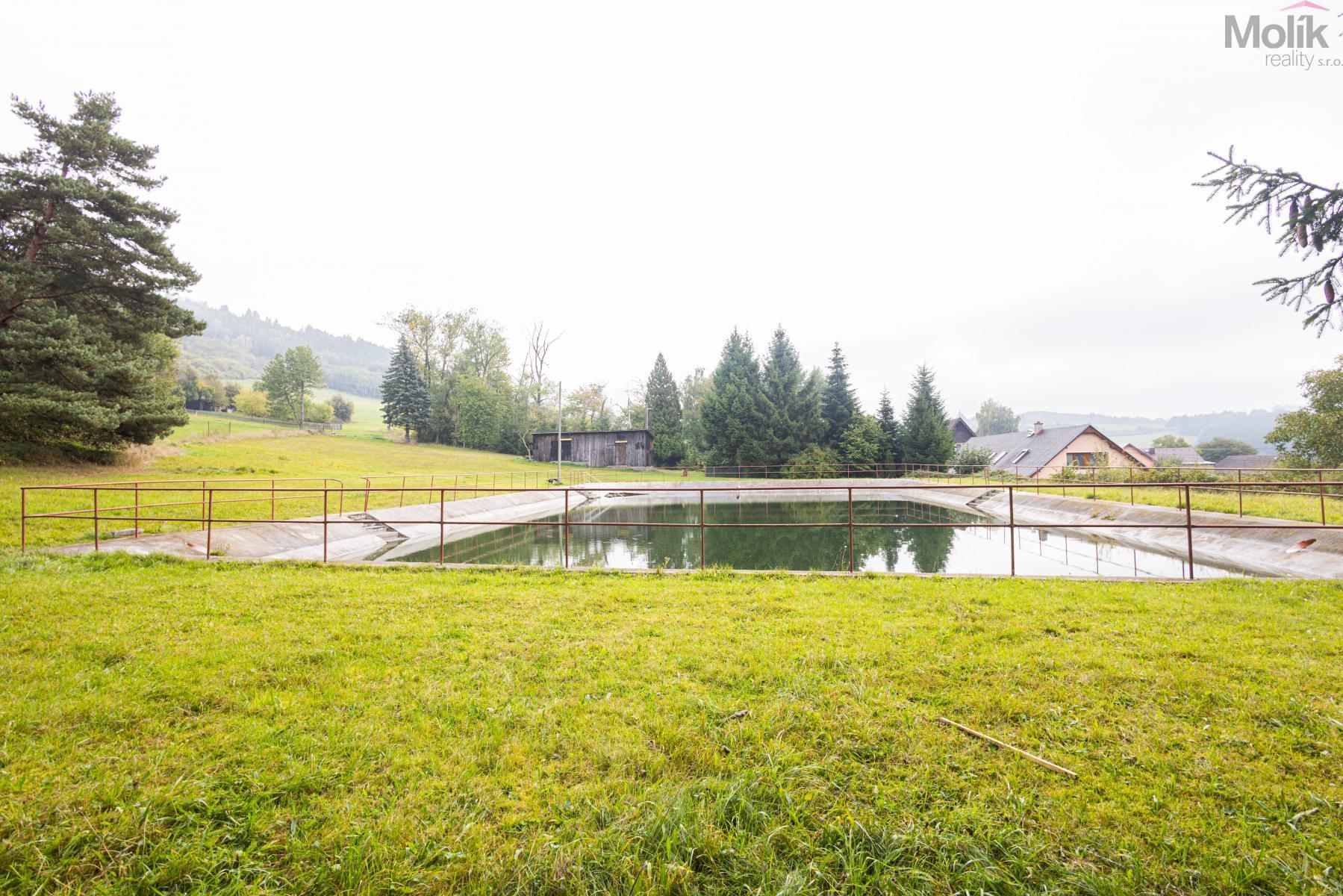 Na pozemku se dále nachází zastřešený bazén, který je napájen solárními panely umístěnými na garážích.