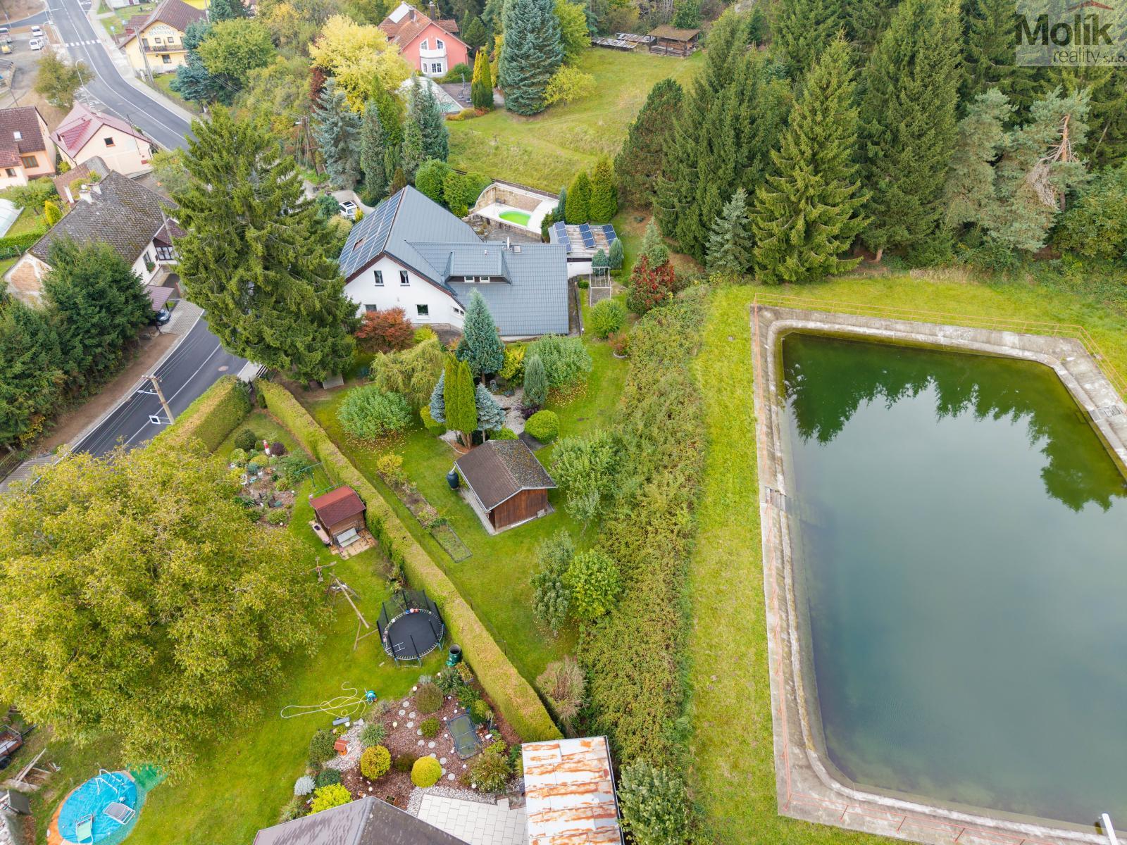 K dispozici je také podzemní sklep, dvě okrasná jezírka a zahradní domek, které dotvářejí klidnou a příjemnou atmosféru celého pozemku.