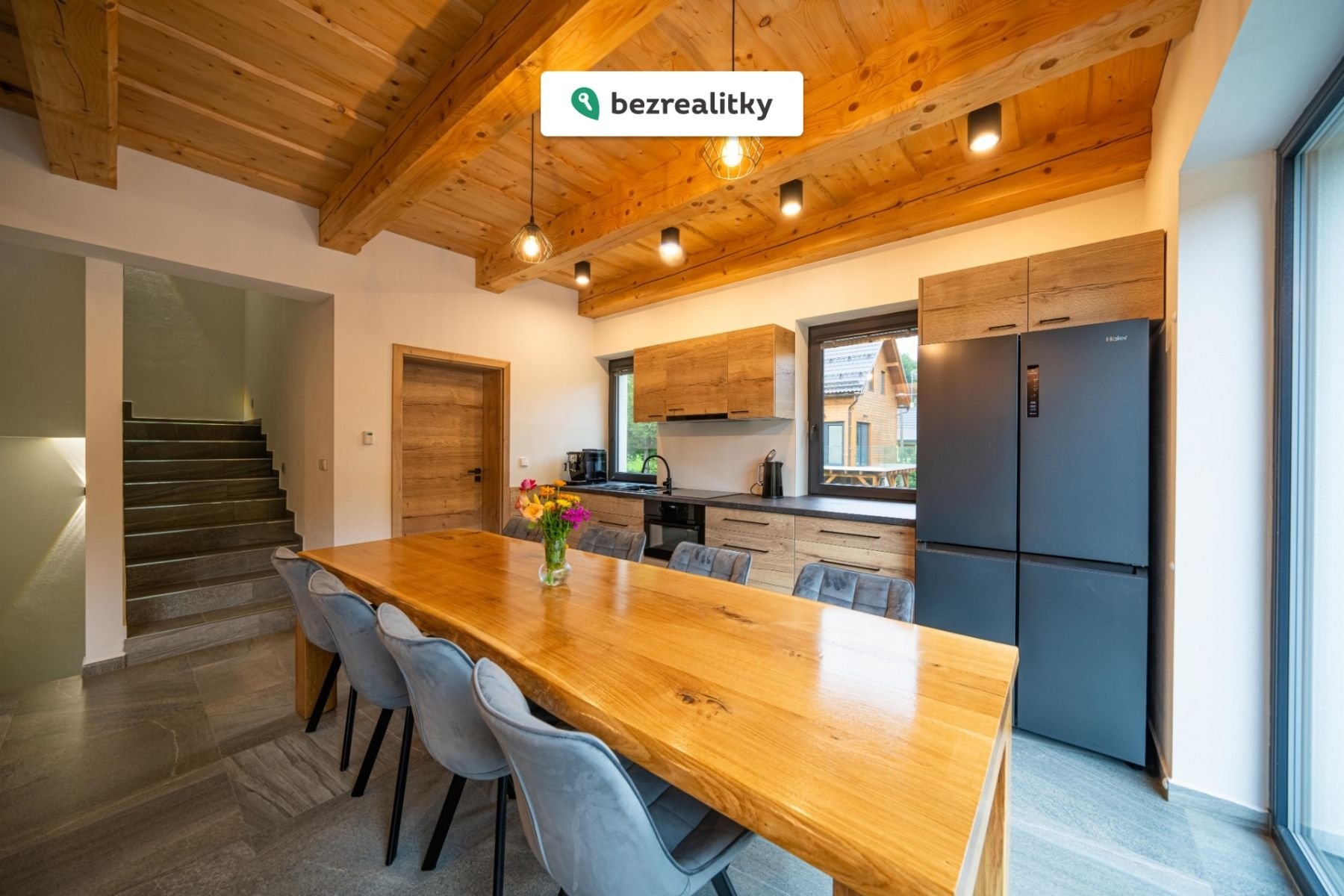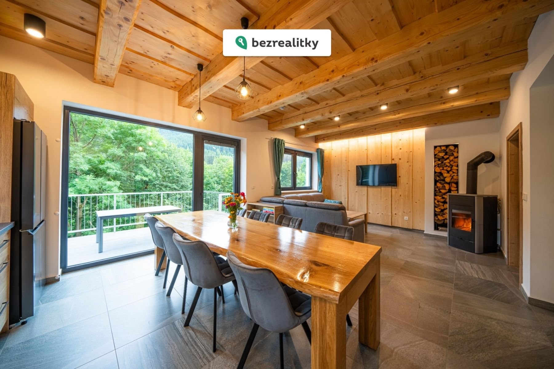 jídelnou 30 m2, koupelna 5,12 m2, WC 1,5 m2, vstup na terasu
