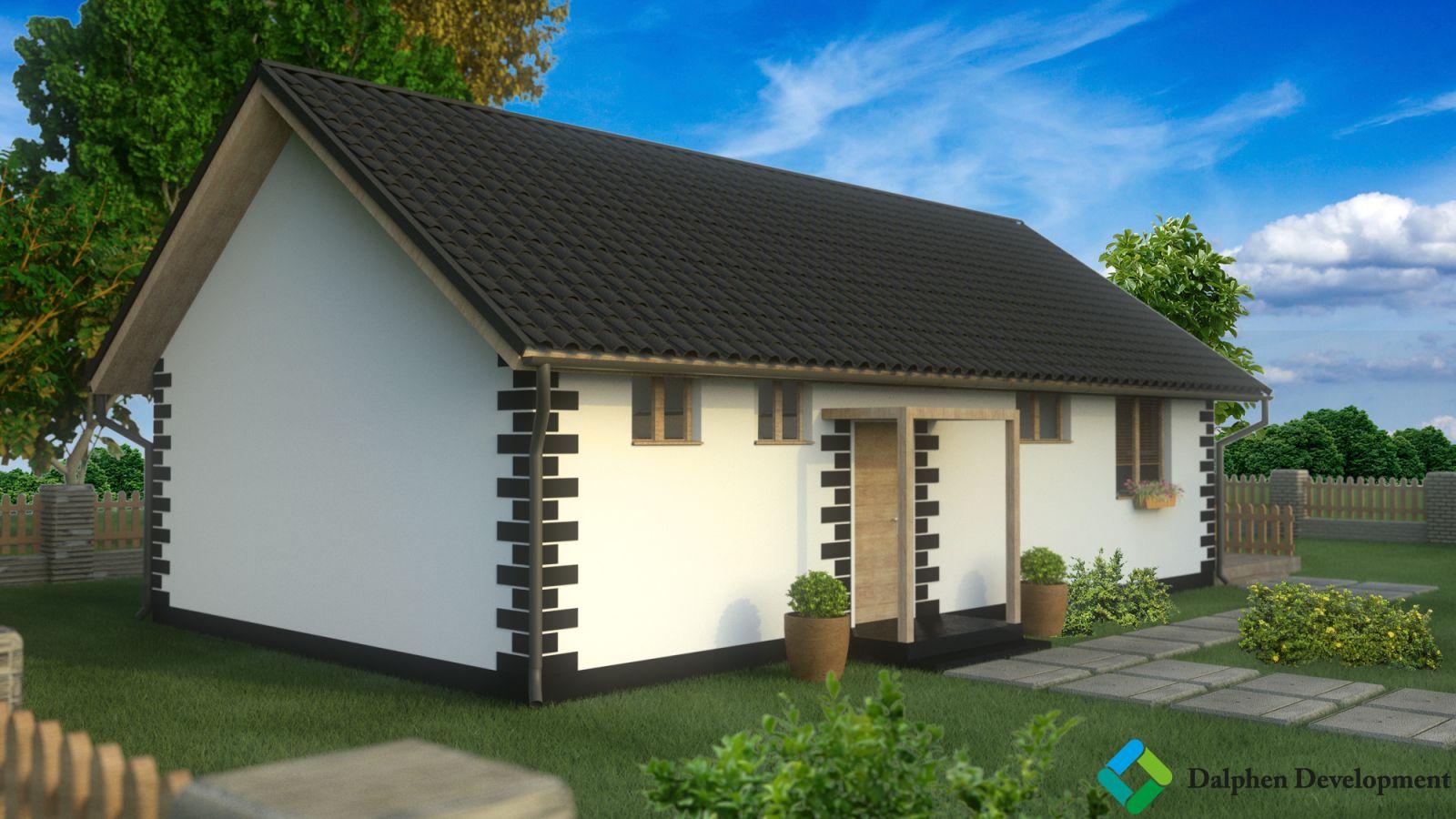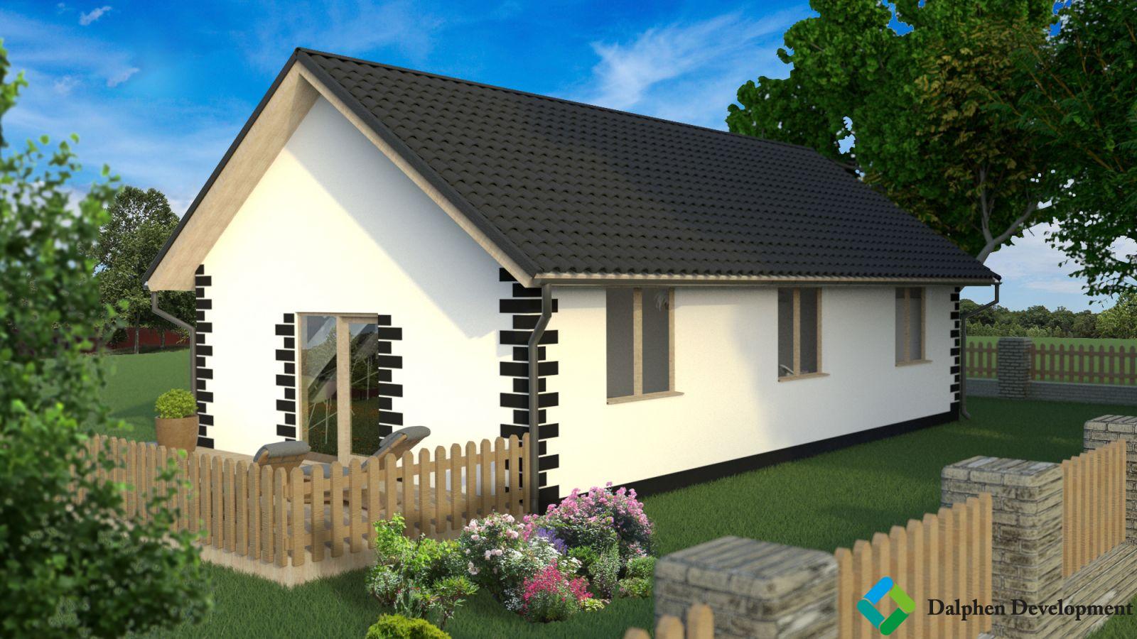 Dispozičně nabízí dům komfortní bydlení až pro čtyřčlennou rodinu, přičemž je kladen důraz na maximální využití prostoru. Uspořádání domu je 3+kk s podlahovou plochou 65 m. Ze zádveří je přímý vstup do samostatného WC a chodby, z níž je přístupná obytná část s kuchyňským koutem, dva pokoje a koupelna. Zdroj tepla je umístěn v technické místnosti, kde se předpokládá také prostor pro pračku a případně sušičku. K domu náleží parkovací stání. Celková plocha pozemku činí 369405 m dle zvolené varianty.