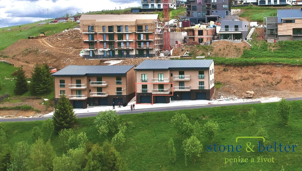 • K apartmánu náleží prostorná garáž (29 m²) s instalovanými držáky na kola, elektrickým vysoušečem bot a možností dobíjet elektrická vozidla, v zimě tedy odpadne majitelům nutnost odklízet sníh z jejich vozu.