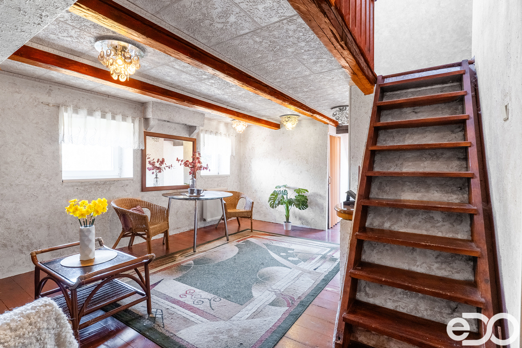 Dvě nadzemní podlaží a podkroví, celková užitná plocha je 290 m². Výměra je pouze orientační. K nemovitosti dále patří sklep a dílna na zahradě. Najdete zde 5 pokojů, společenskou místnost s krbem, kuchyň, technické zázemí a samostatný byt v podkroví. Hlavní zdroj vytápění jsou akumulační kamna, k vytápění slouží také přímotopy a krbová kamna s výměníkem napojená na radiátory a teplou vodu zajišťují bojlery. Napojeno na veřejný vodovod, odpad sveden do septiku – kanalizační přípojka je cca 10 metrů od domu, stačí ji dodělat. Nad podkrovím je navíc půdní prostor (cca 67 m²), využitelný jako sklad nebo úložné zázemí.