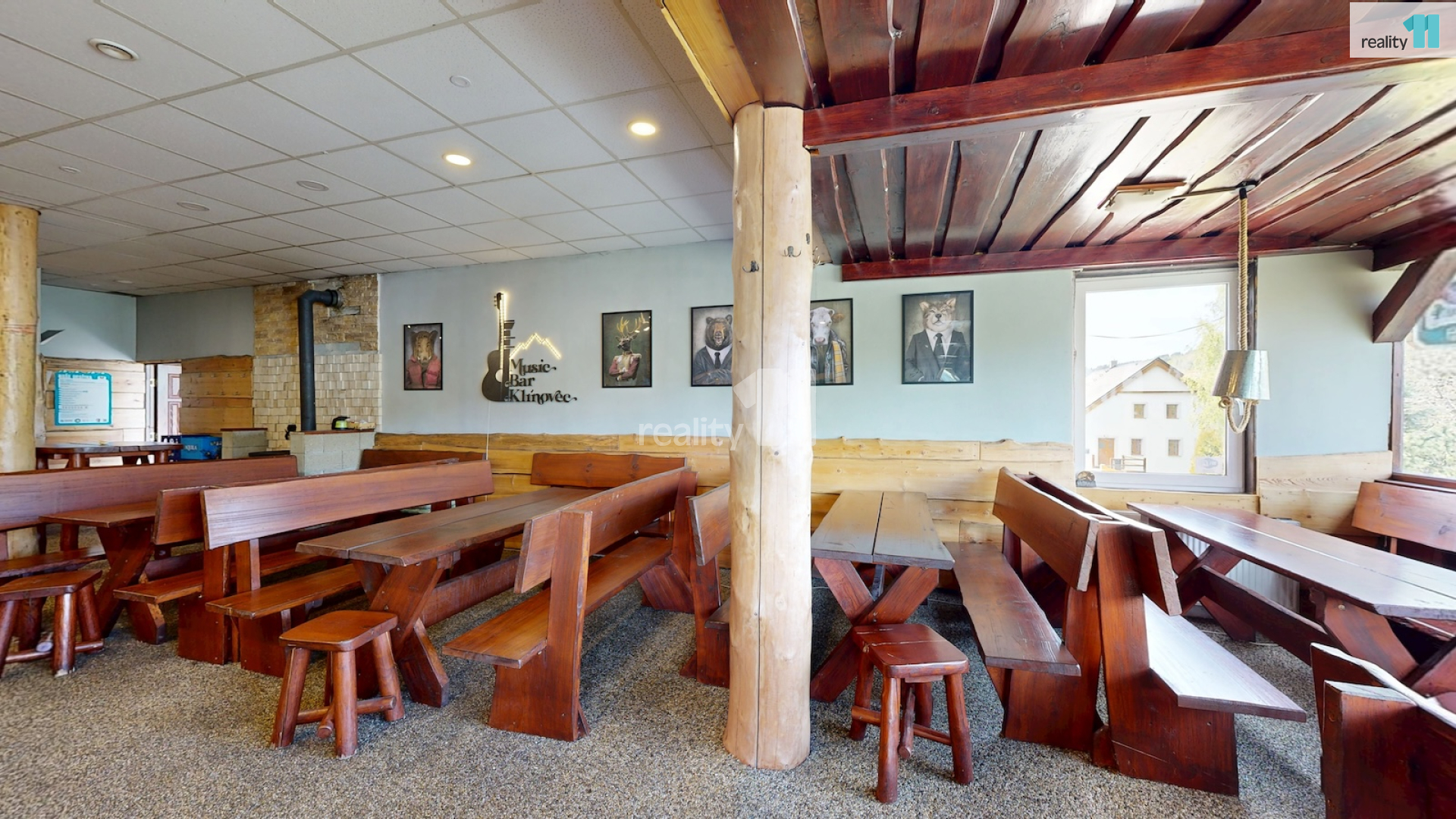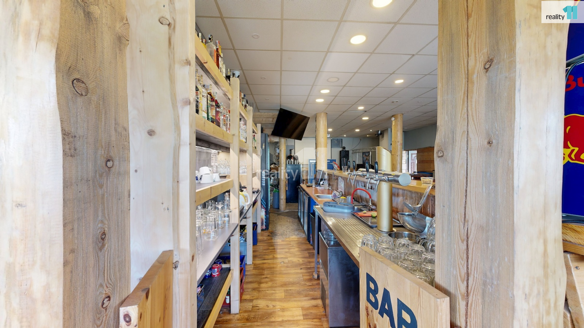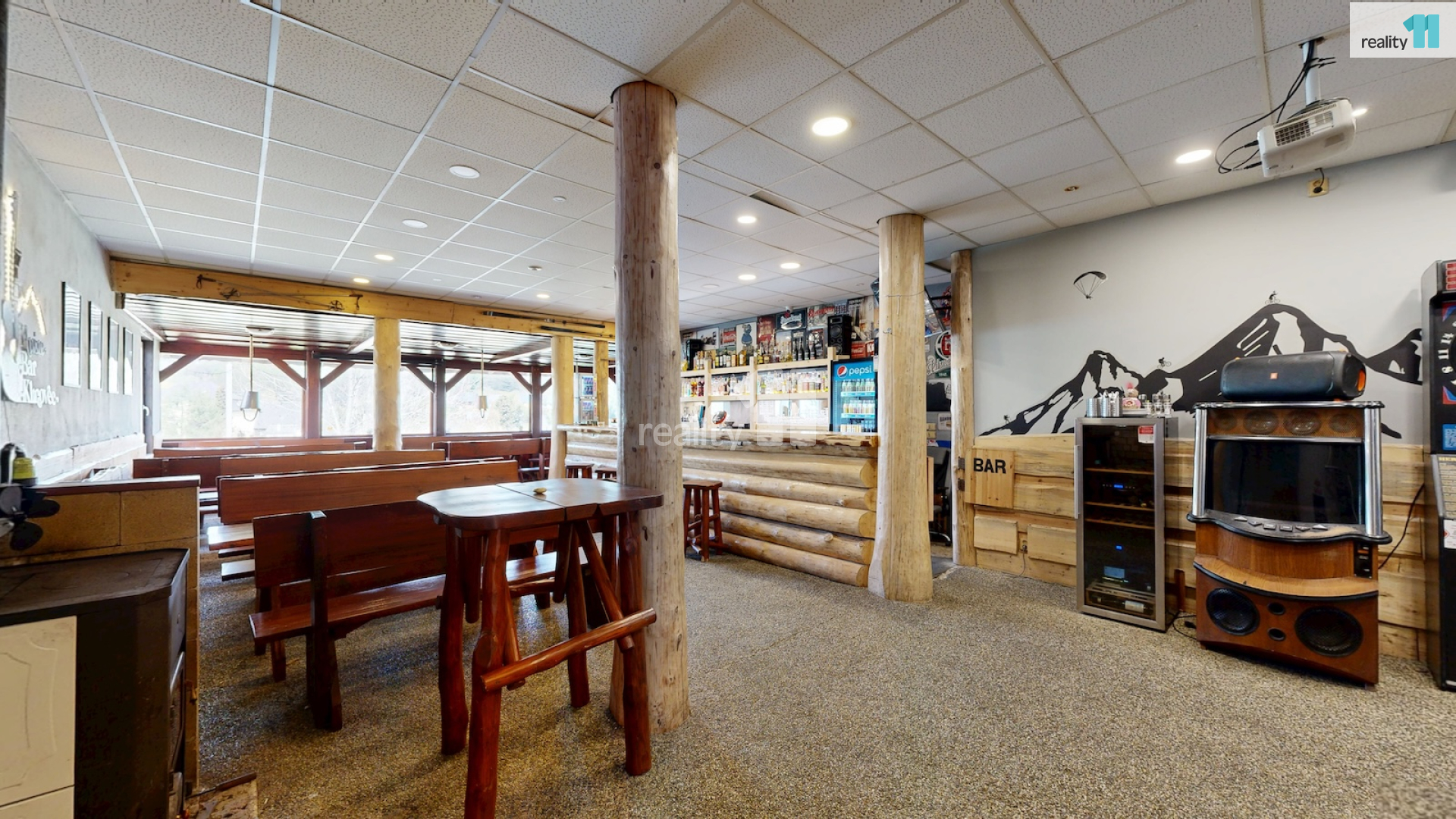 Jedná se o bývalou budovu jednoty, okálového typu, kde došlo k částečnému prosklení a byla přistavěna velká terasa. Díky velkému vlastnímu pozemku je možné stavu také rozšířit, případně ji přestavět na apartmány - penzion. Hlavním vstupem se dostaneme do zádveří s technickou místností a skladem, dále pak do hlavního sálu s krásným, dřevěným barem, masivními stoly, a částí, která slouží jako parket, případně pro turnaje v šipkách, projekce atd. V zadní části je pak sociální zázemí, kuchyně (vybavení kuchyně je možné odkoupit od současného nájemce), několik skladů a dalších technických místností.
