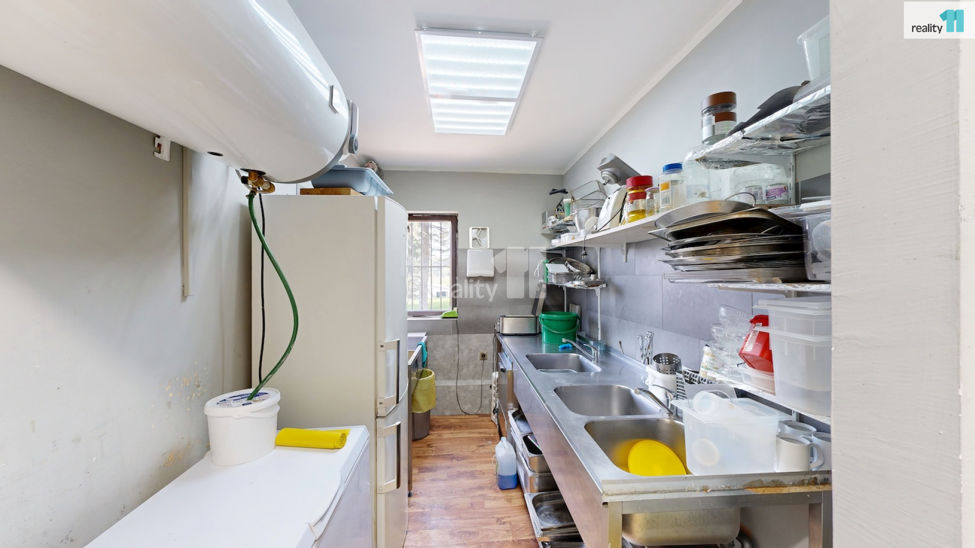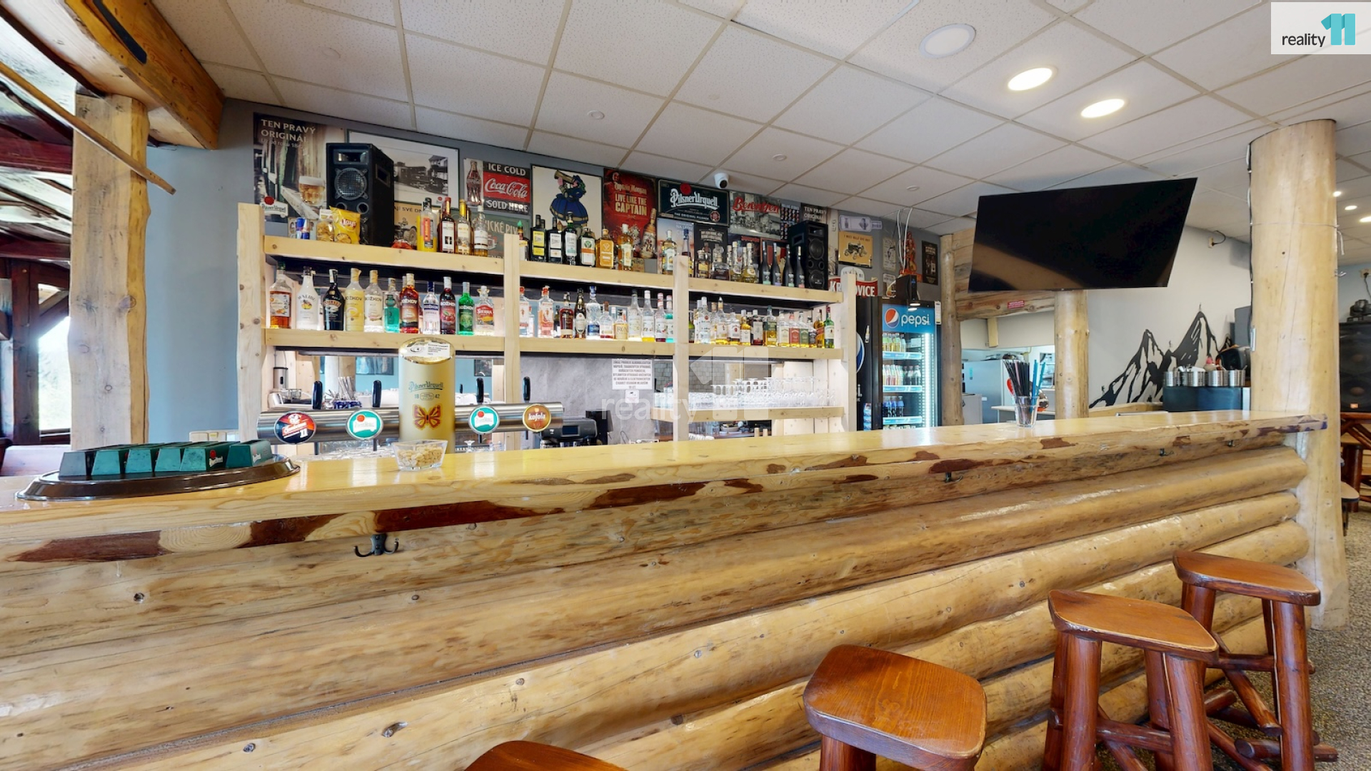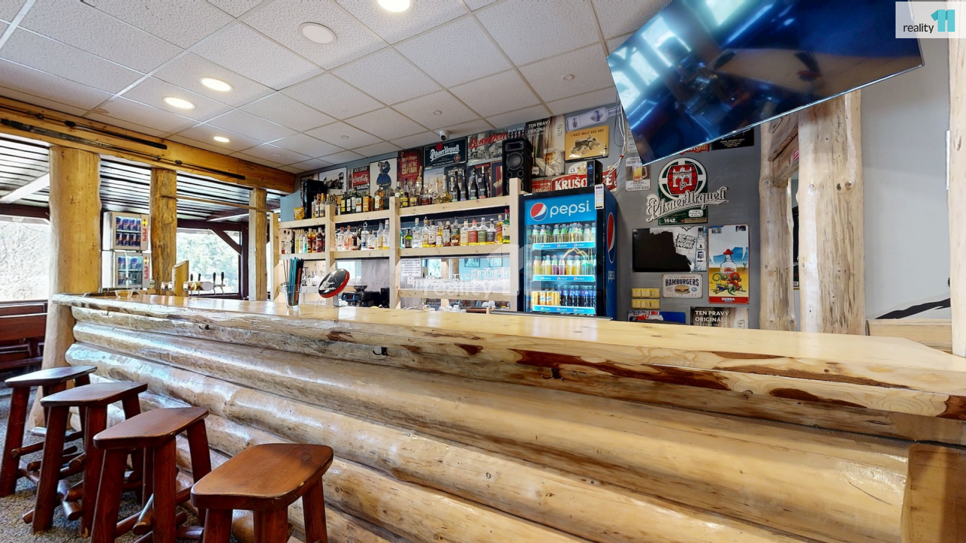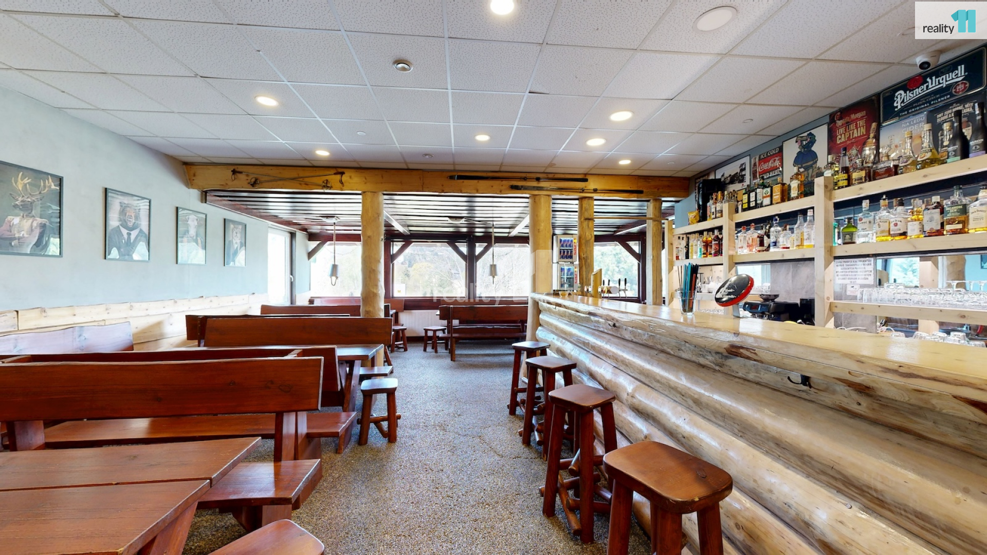 Jedná se o bývalou budovu jednoty, okálového typu, kde došlo k částečnému prosklení a byla přistavěna velká terasa. Díky velkému vlastnímu pozemku je možné stavu také rozšířit, případně ji přestavět na apartmány - penzion. Hlavním vstupem se dostaneme do zádveří s technickou místností a skladem, dále pak do hlavního sálu s krásným, dřevěným barem, masivními stoly, a částí, která slouží jako parket, případně pro turnaje v šipkách, projekce atd. V zadní části je pak sociální zázemí, kuchyně (vybavení kuchyně je možné odkoupit od současného nájemce), několik skladů a dalších technických místností.