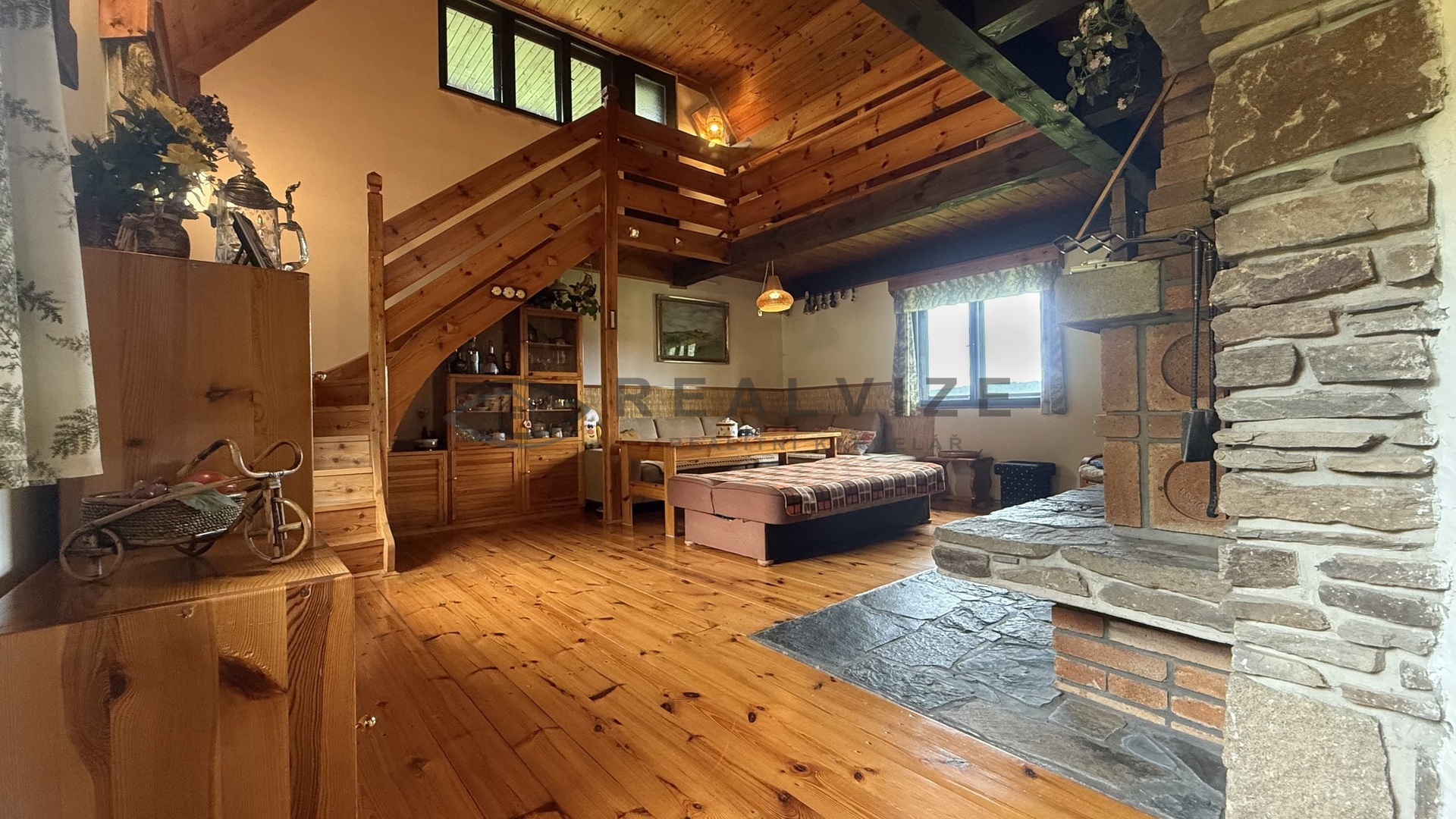 Zděná chata - zastavěná plocha 93 m2, (borovanská cihla), stropy dřevěné,