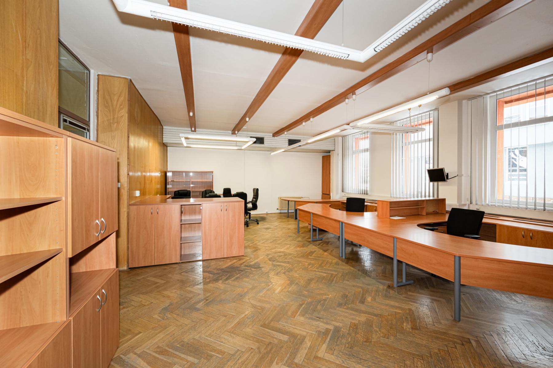 Exkluzivně nabízím ke koupi velký nebytový prostor o celkové ploše 219,6 m2, nacházející se v přízemí administrativní budovy v centru města Louny, ulice Školní.