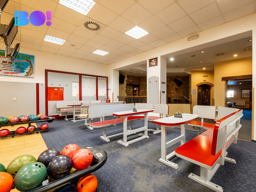 Součástí je 40 míst k sezení + 3 stoly přímo na bowlingu, bar a sociální zázemí.