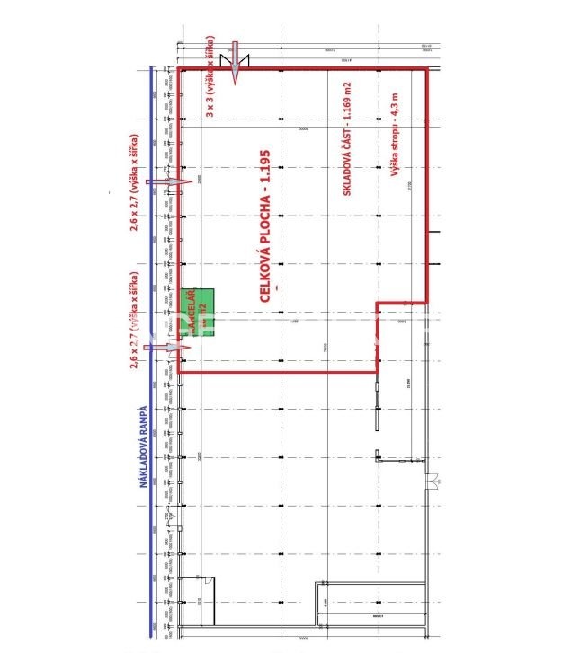 Pronájem skladových / výrobních prostor 1195 m2 v Lounech
