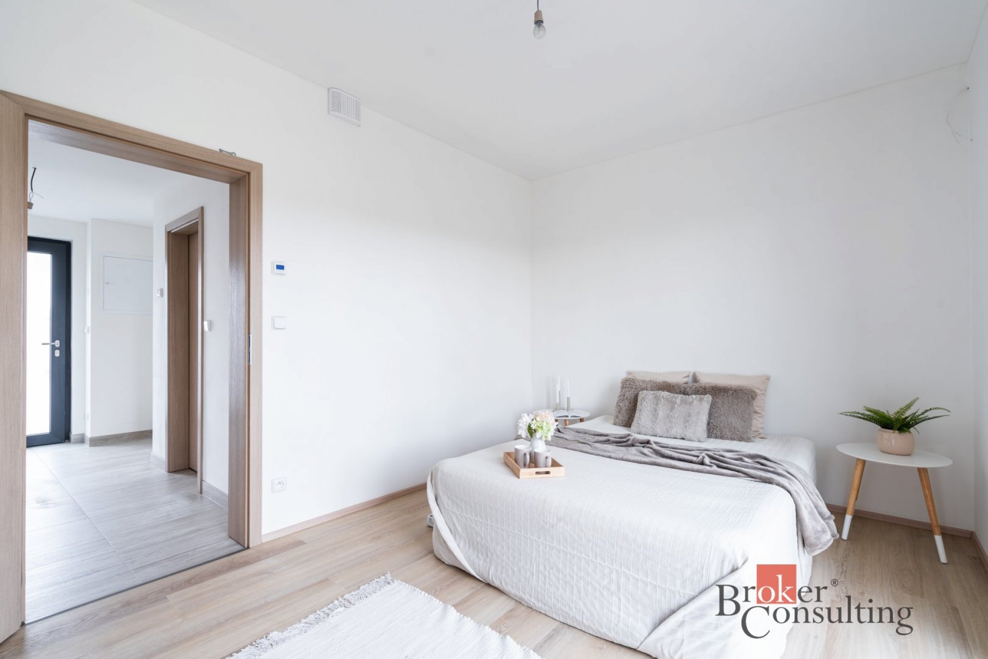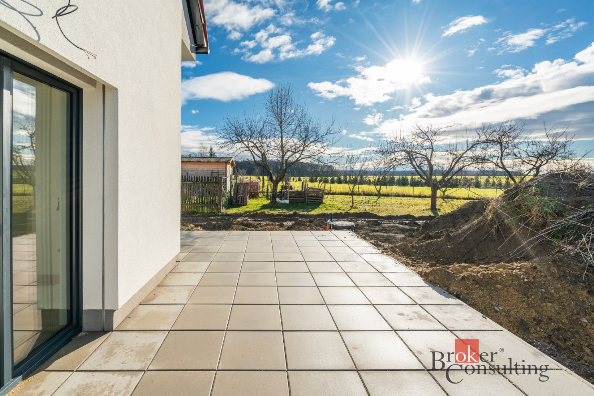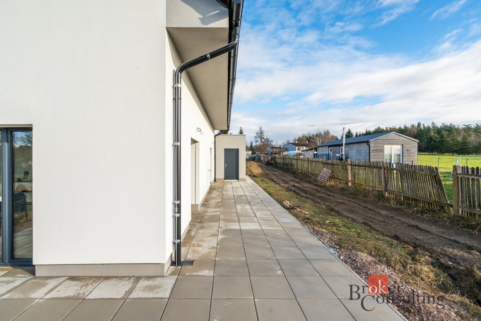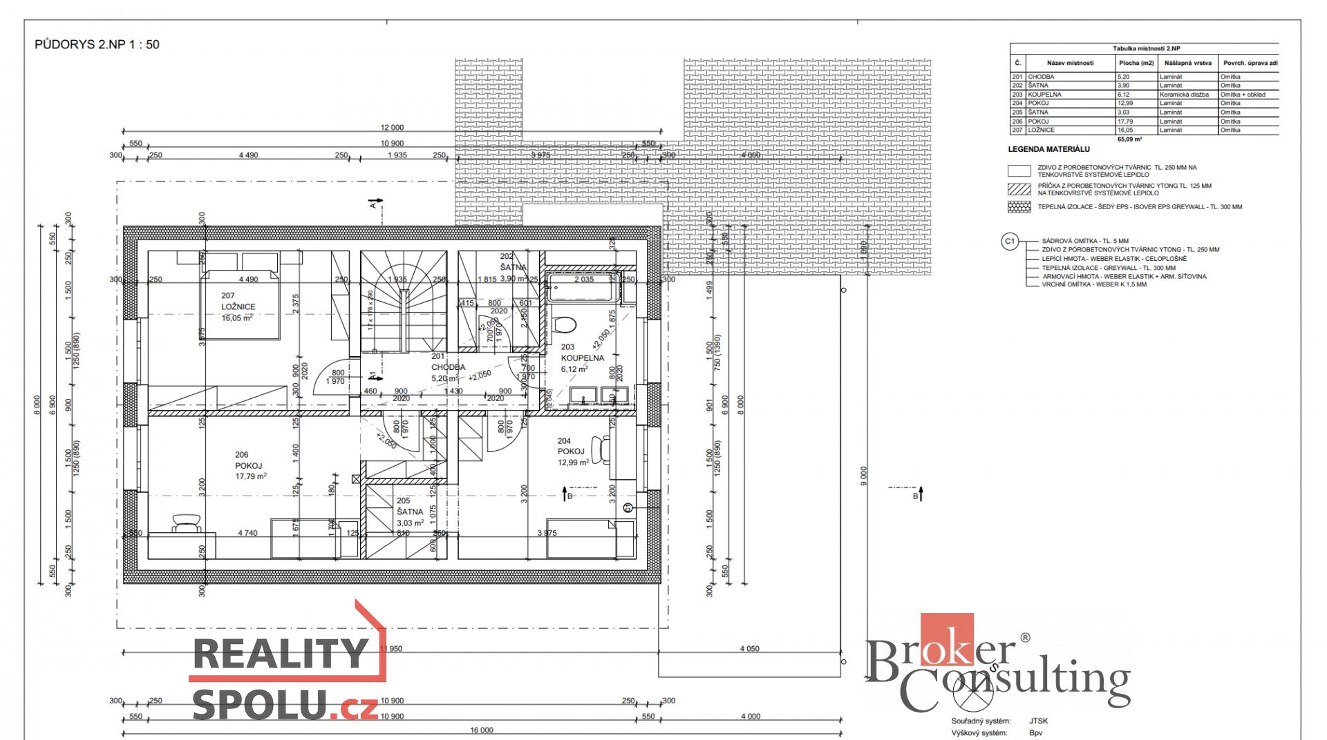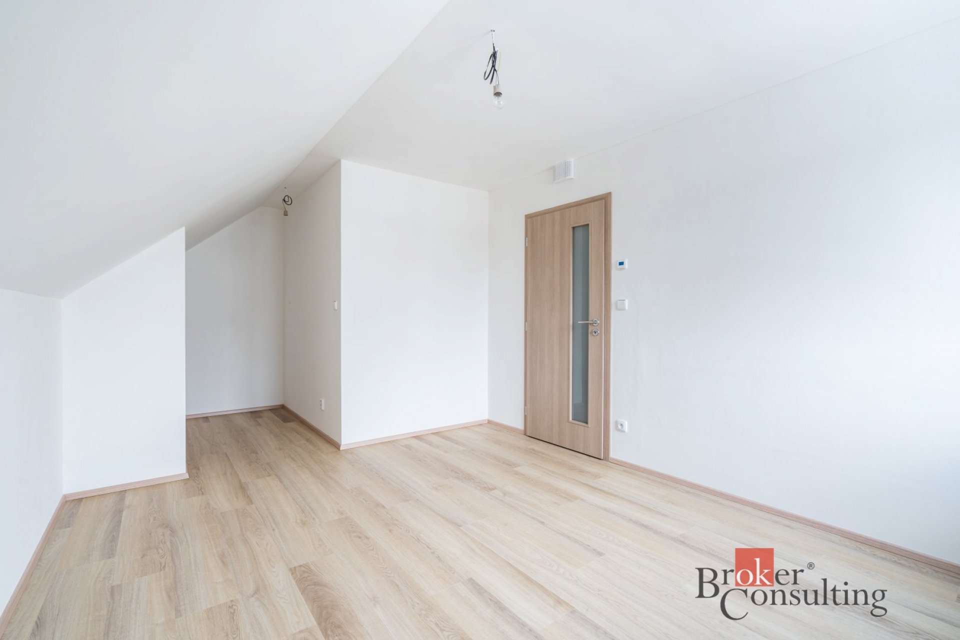 Jedná se o zděnou stavbu (Ytong) se dvěma nadzemními podlažími. Tato novostavba o dispozici 5+kk se nachází na pozemku o rozloze 723 m², přičemž celková plocha domu činí 164,8 m². V přízemí se nachází prostorný obývací pokoj spojený s kuchyní (41,1 m²) a vstupem na terasu (40 m²), dále je zde místnost, která může sloužit jako pokoj pro hosty či pracovna (11,8 m²), koupelna se záchodem (4,6 m²), technická místnost (2,9 m²) a ještě jedna menší místnost pod schody (4,0 m²). V prvním patře jsou dva pokoje s vlastní šatnou (17,8 m² a 16,0 m²), dále ložnice (16,0 m²) se samostatnou šatnou (3,0 m²) přes chodbu a také druhá koupelna (6,1 m²). Jistě také oceníte pudní prostor o velikosti cca 40 m².