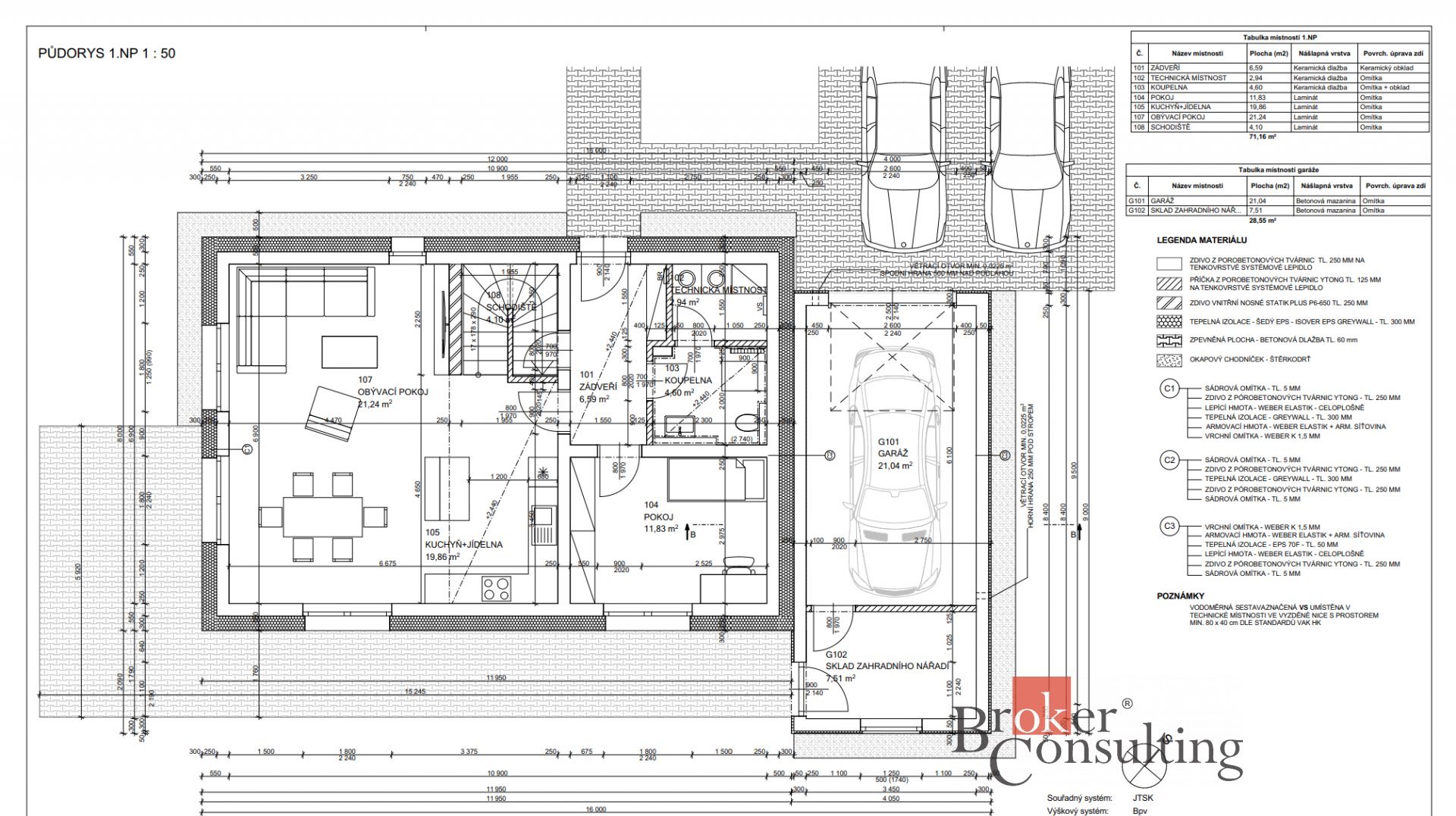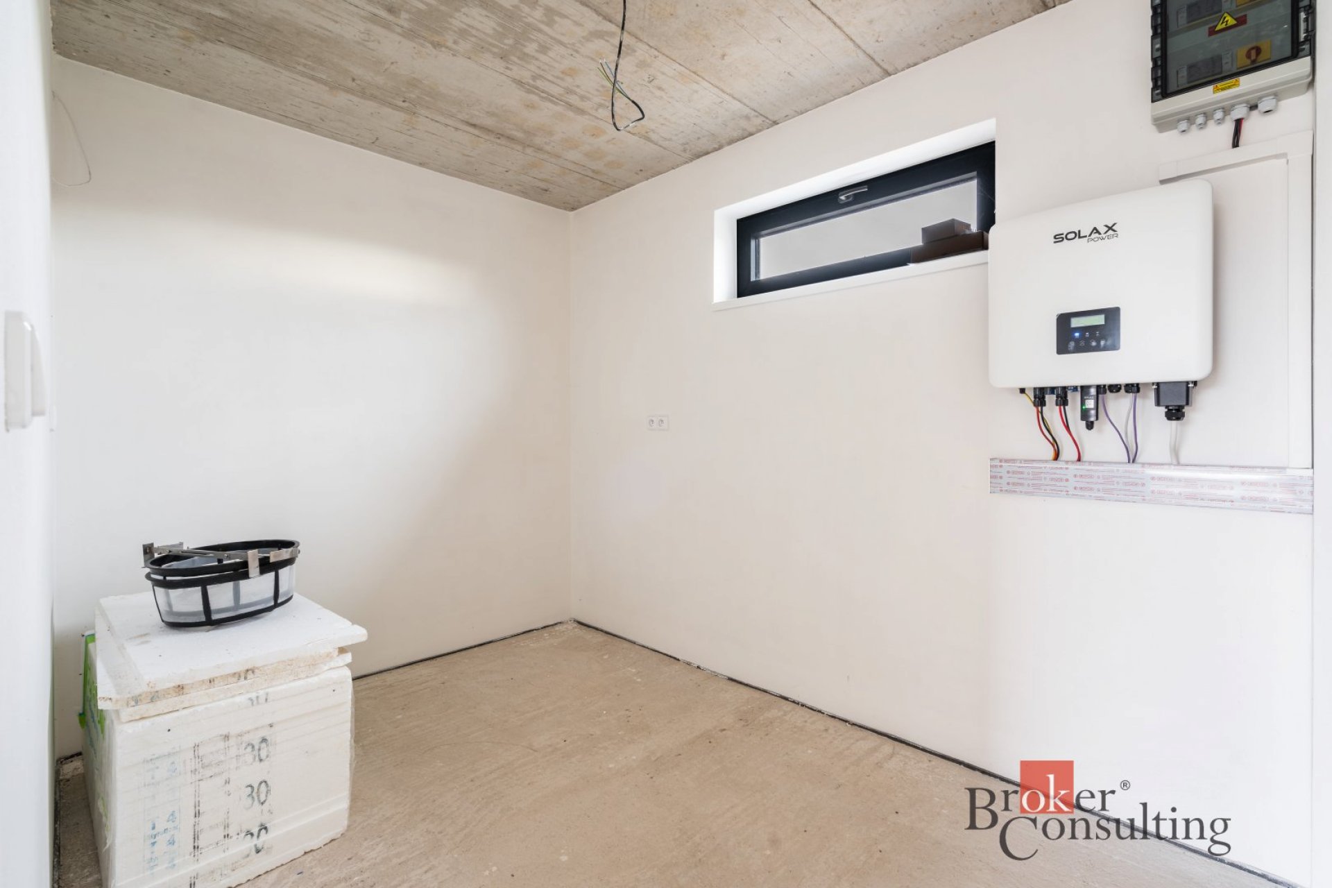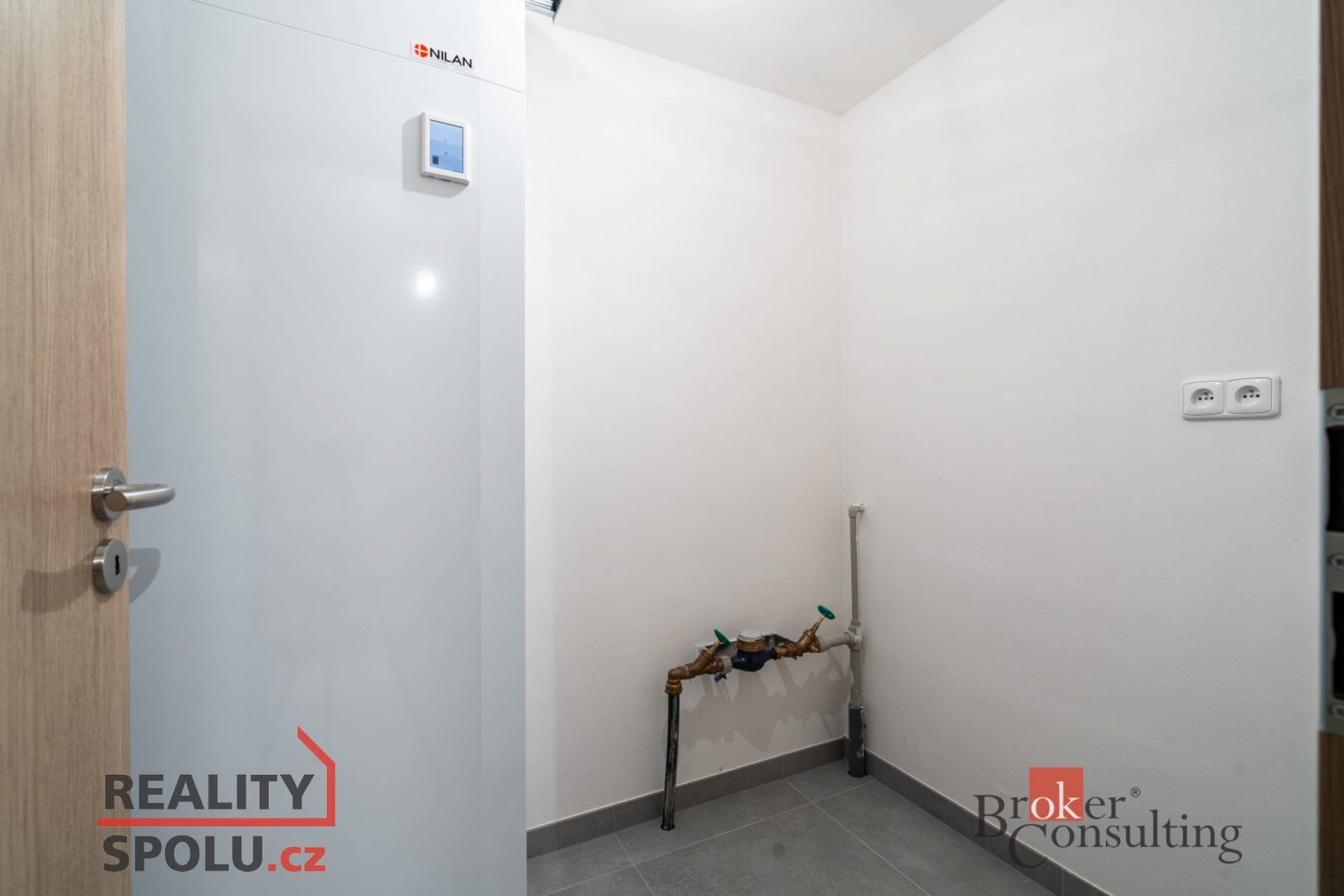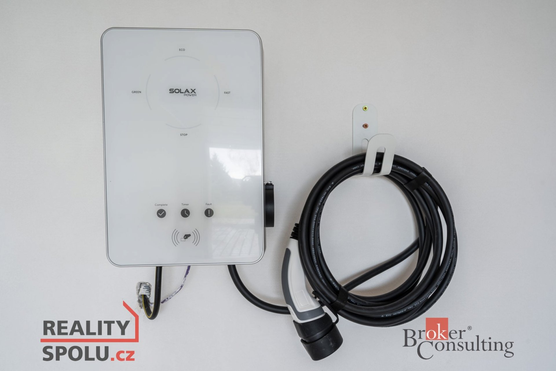 U domu se nachází také prostorná garáž se skladem zahradního nářadí (28,5 m²), kde je uložena technologie FVE a příprava pro bateriové úložiště.