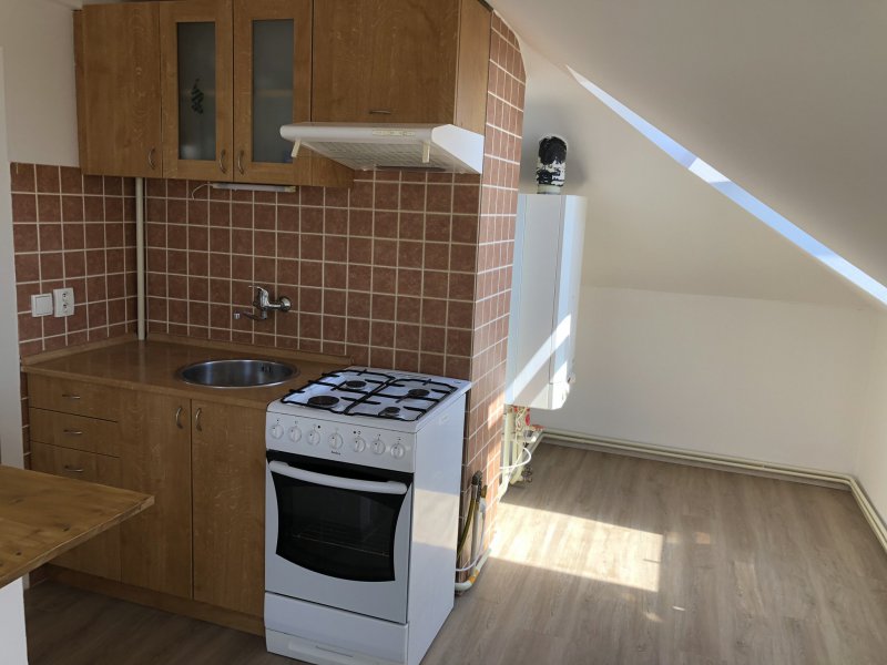Dovolujeme si Vám exkluzivně nabídnout k prodeji krásný podkrovní byt v osobním vlastnictví o dispozici 2+kk a o velikosti 38 m2. Byt se nachází ve čtvrtém patře menšího cihlového domu se slušnými sousedy. Světlá chodba nás zavede do vkusně zrekonstruované koupelny s vanou a toaletou. Prostorný obývací pokoj s novou plovoucí podlahou disponuje menší kuchyňskou linkou, plynovým sporákem. V bytě je samostatná ložnice. Byt je velmi vkusně zařízen v dřevěném dekoru, kterému dominují trámy a střešní okna v celém bytě, která zajišťují dostatek světla. Vytápění bytu a ohřev vody je zajištěn samostatným plynovým kotlem. K bytu náleží také větší sklep velký přibližně 12m2. Byt je ideální jak pro klidné bydlení ve slušné lokalitě se skvělou dostupností do centra města, tak i k investici. Momentálně je byt dlouhodobě pronajímán slušnému nájemci, který má zájem v bytě zůstat. Veškeré informace ohledně výnosu jsou k dispozici. V okolí je veškerá občanská vybavenost i plno zeleně. Pokud chcete bydlení v klidném domě, ale přesto v blízkosti dění Lovosic, neváhejte se obrátit na makléřku. S financováním nemovitosti vám rádi pomůžeme.