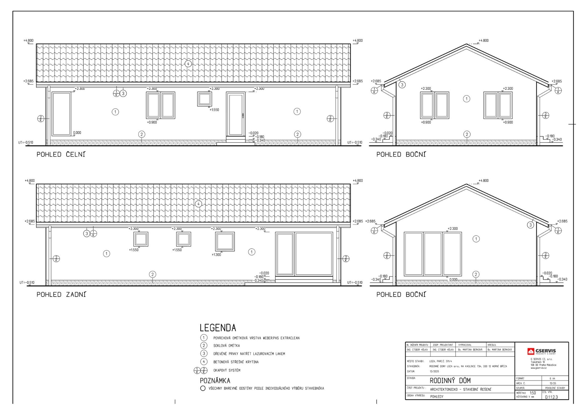 5 bunglalovů velikosti 4 kk užitné plochy 98.3 m2 pozemky o velikosti 726 m2 - 762 m2